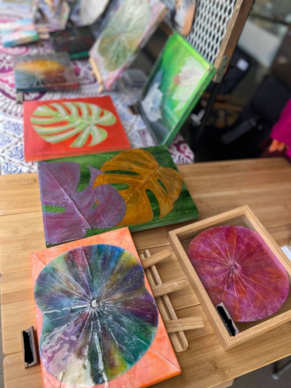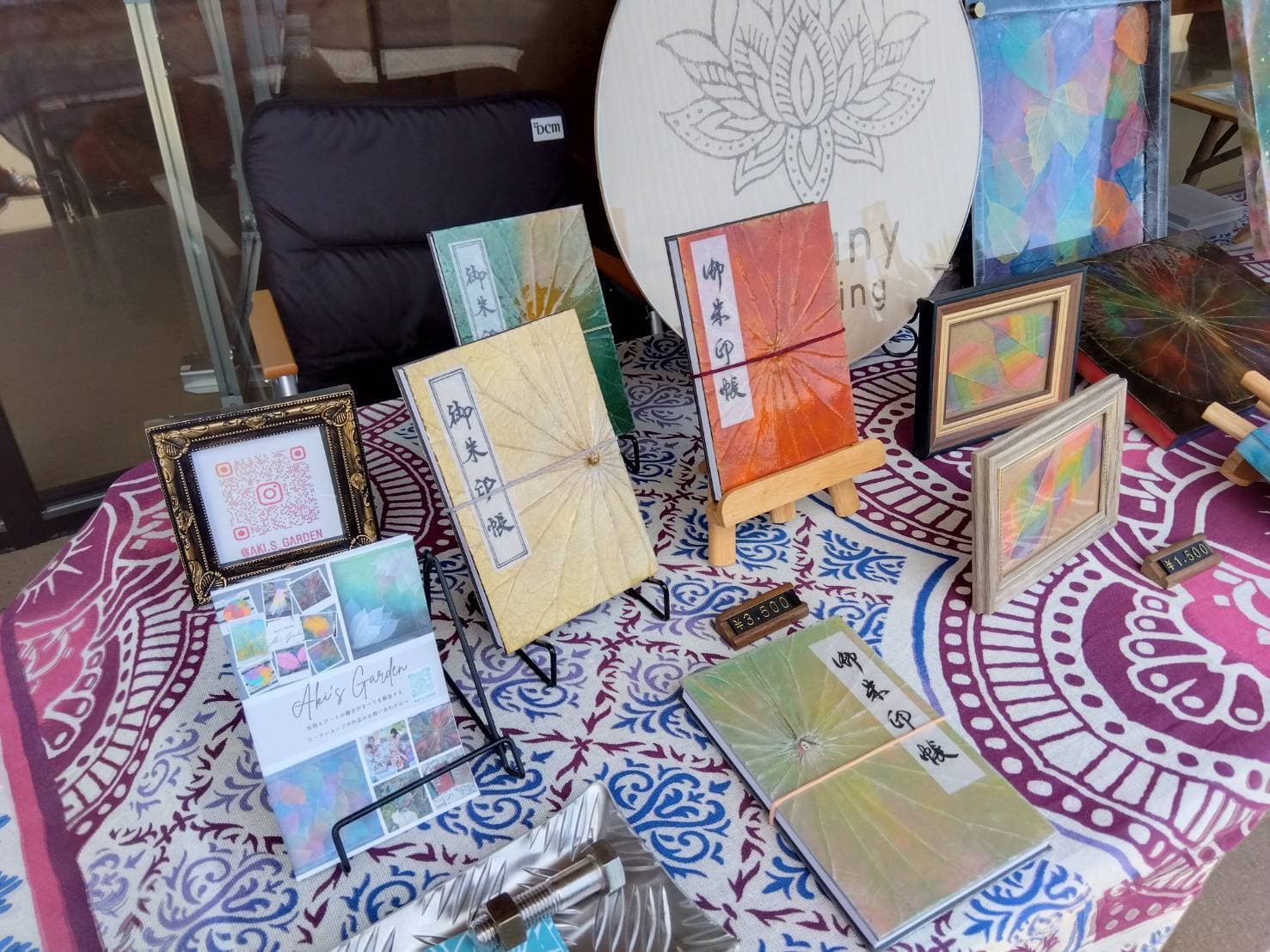 特殊加工した天然の蓮の葉やインドボダイジュの葉などに色づけていくアート作品などを創っています。あなたのお気に入りの空間に彩りを♪癒しや浄化にも…【Aki’s Garden】