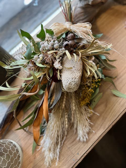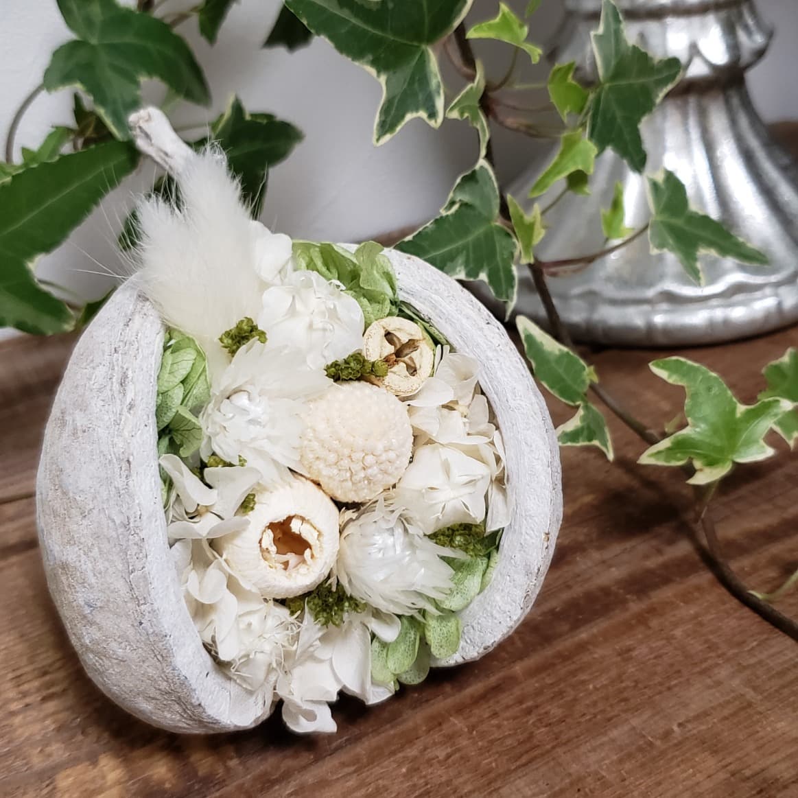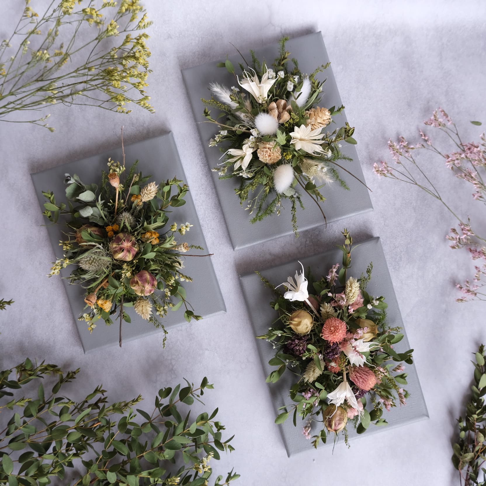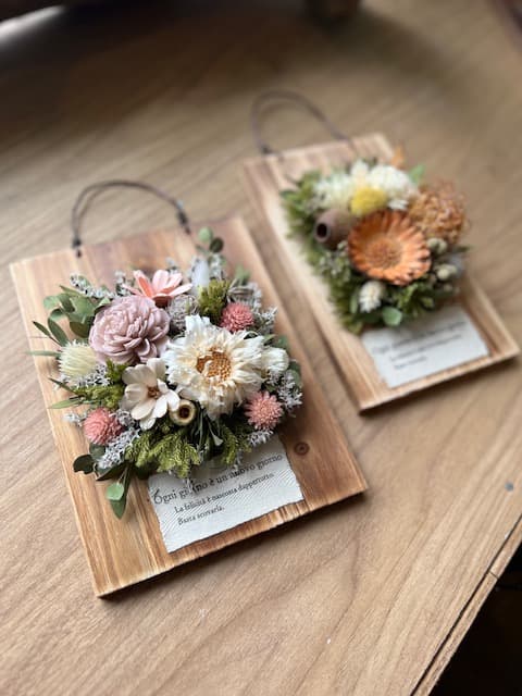 ドライフラワー、プリザーブドフラワーを使用したシンプルなフラワーデザイン