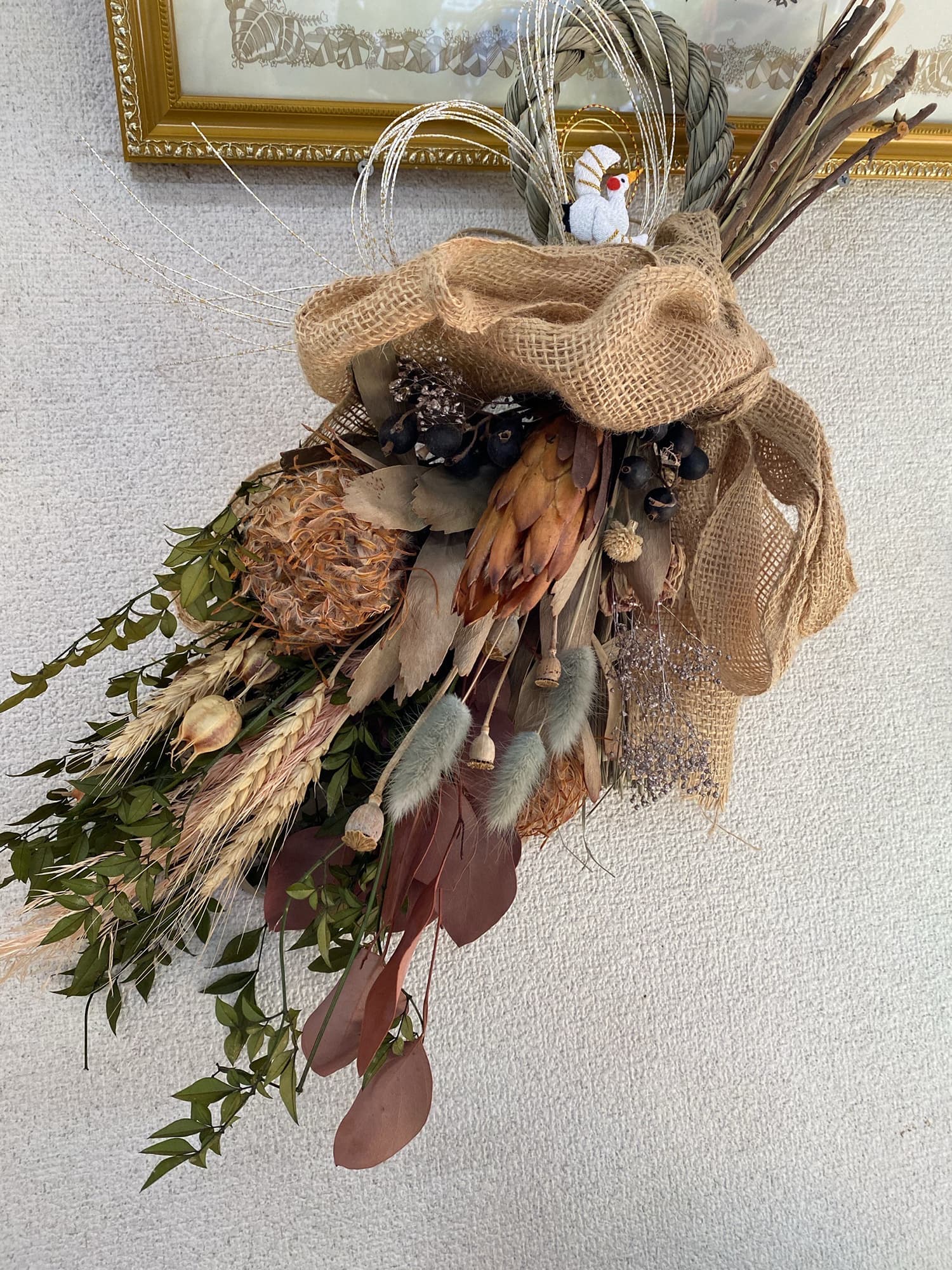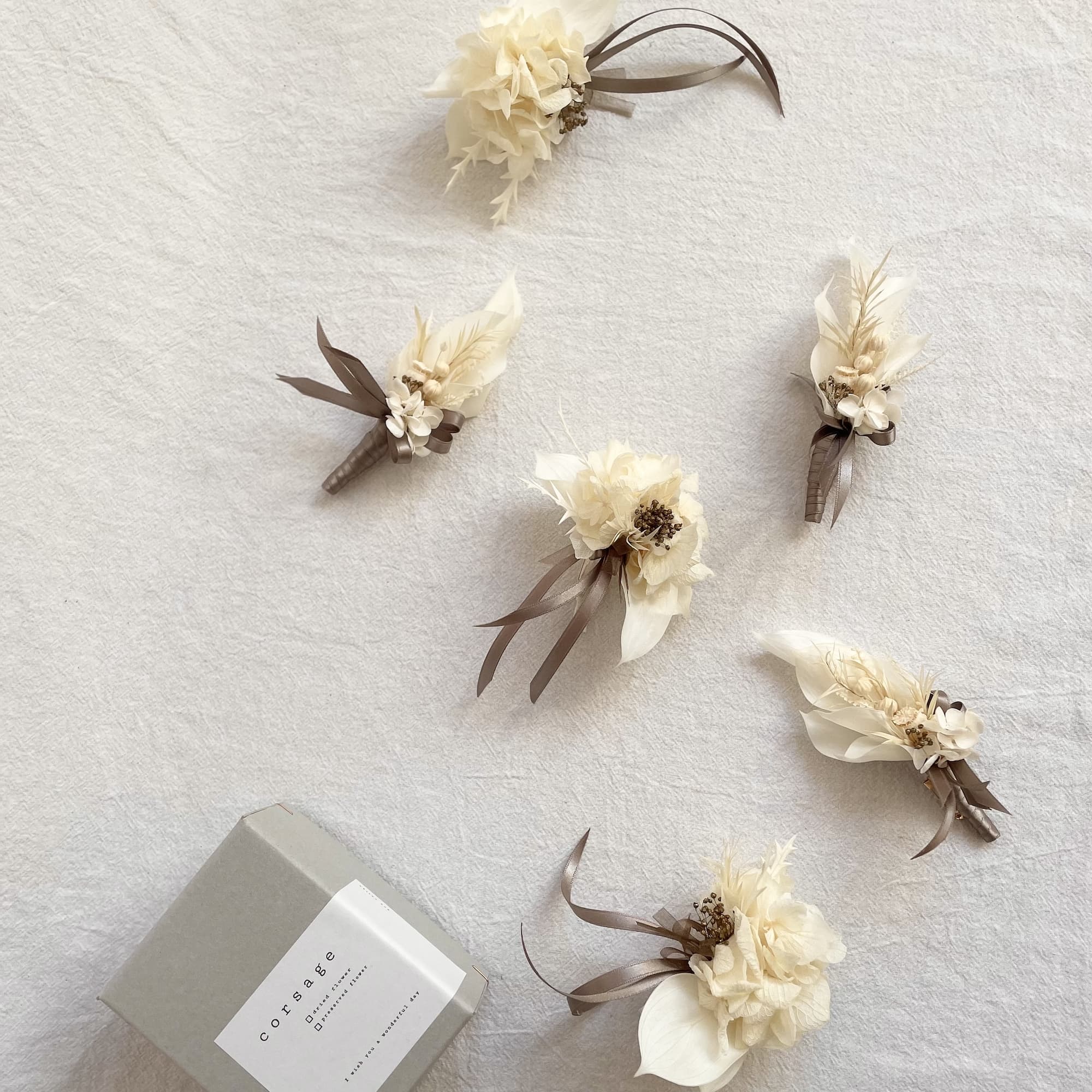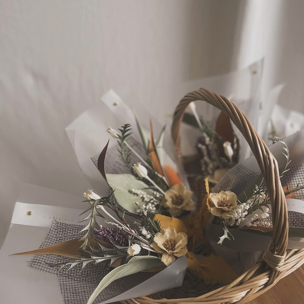 ドライフラワー、プリザーブドフラワーを使用したシンプルなフラワーデザイン