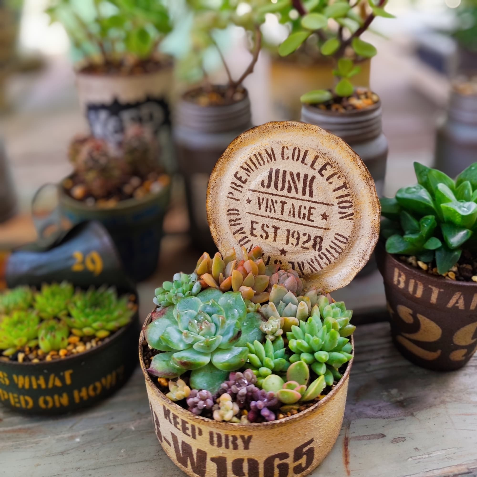 多肉植物やサボテンの寄せ植えやインドアグリーンをご用意しております ジャンクナチュラルなリメ缶リメ鉢ピック プラントハンガー等ガーデン雑貨は 雰囲気作りにもお勧めです ぜひお手に取ってご覧ください