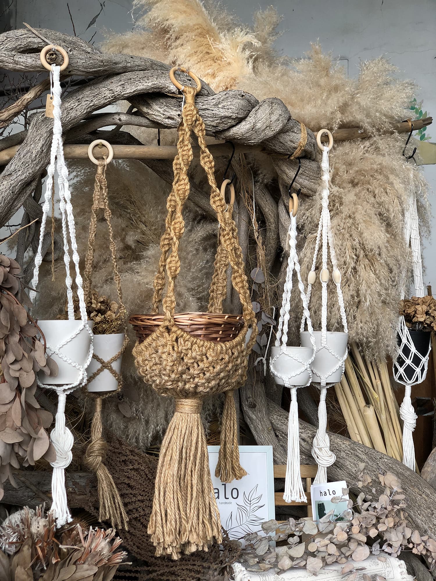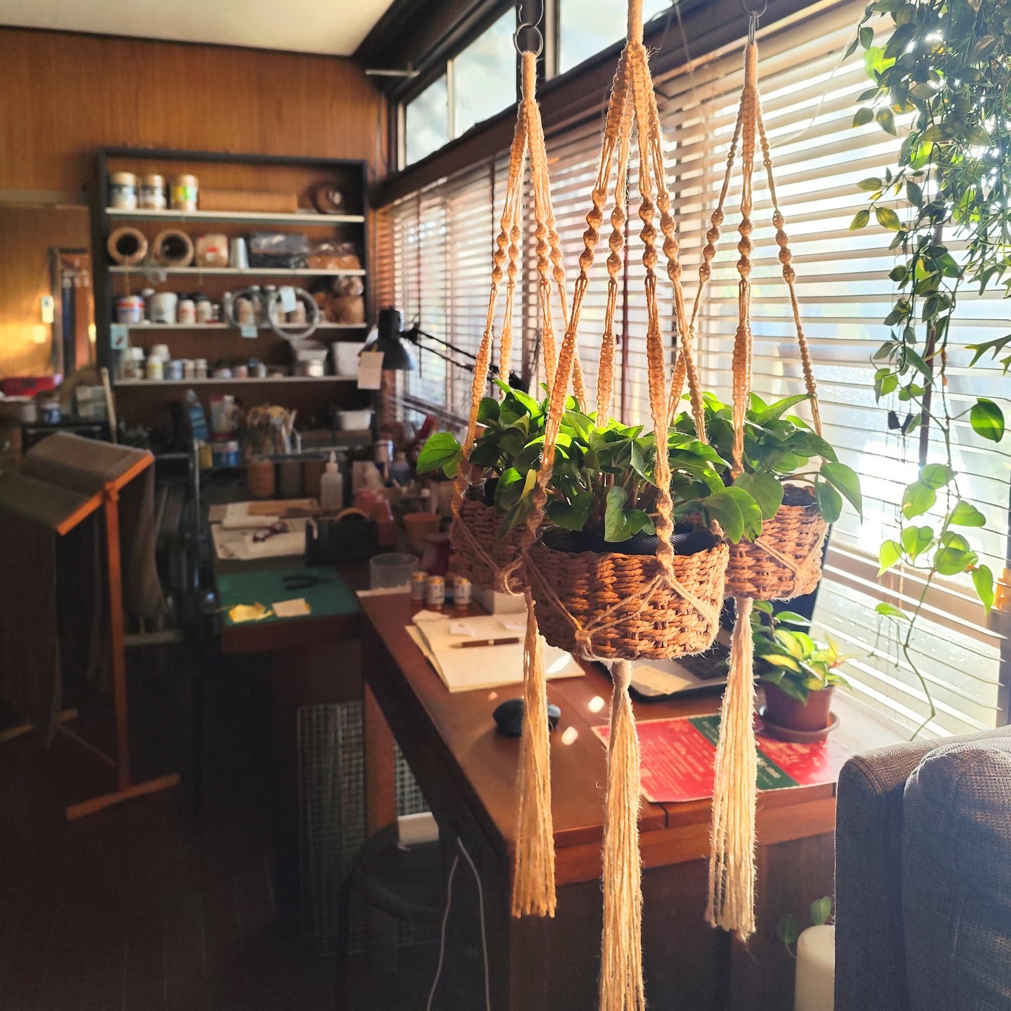 ワークショップは草木染の麻ひもで作るプラントハンガー作りです。