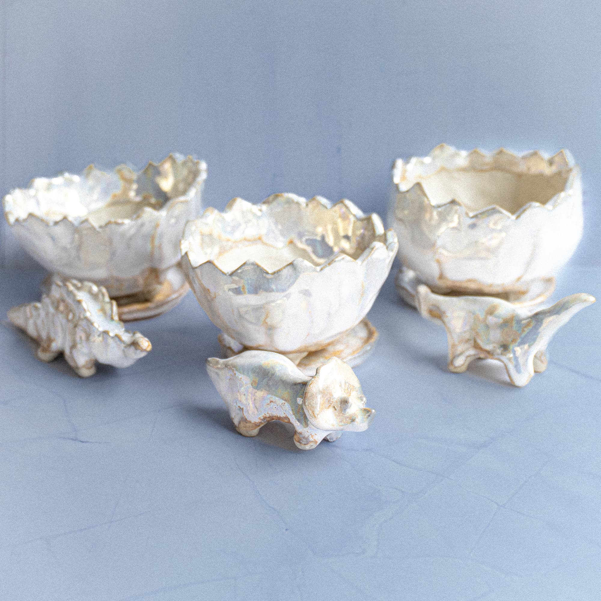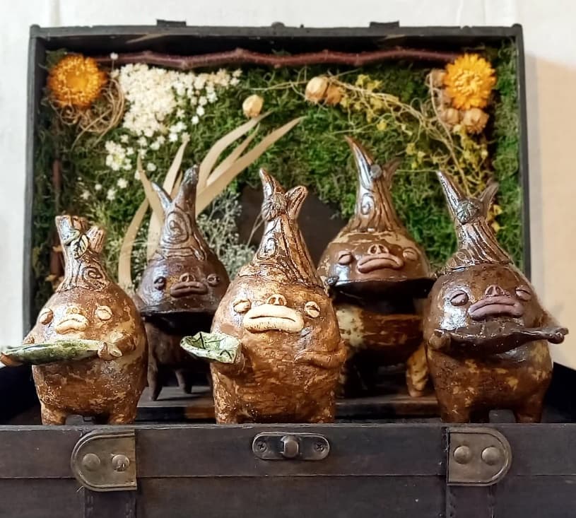 完全手びねりとガス窯での還元焼成に拘った癖ツヨめ唯一無二の器たち、及びほっこり小物で癒されて頂けたなら幸いです。
