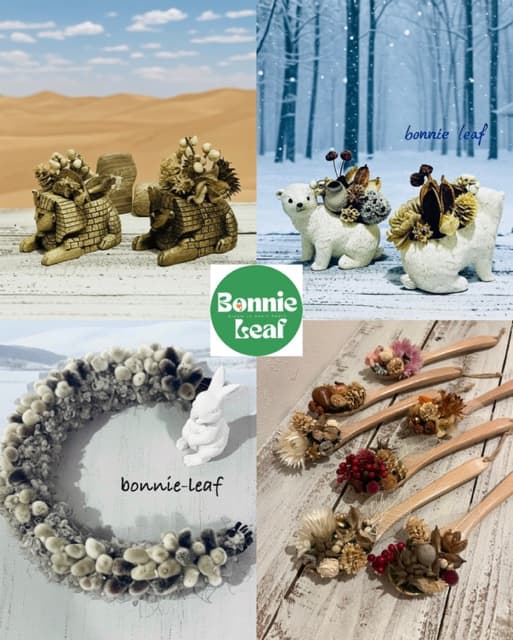 毎日の生活にワクワク楽しくなるアイテムを制作しています。造花とドライフラワー、ドライフラワーのアレンジリース、ドライ苔のテラリウム、布小物とアクセサリーなどは他にはない個性的で可愛い商品です。