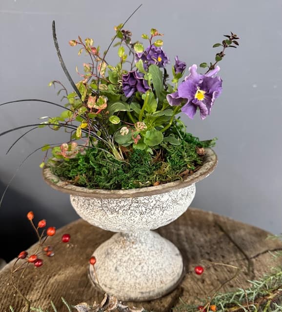 根つきの植物を束ねて作る花束のような寄せ植え「ブリコラージュフラワー」のお店です。花苗の販売と、体験ワークショップを行います。植物との暮らしを楽しみませんか。
