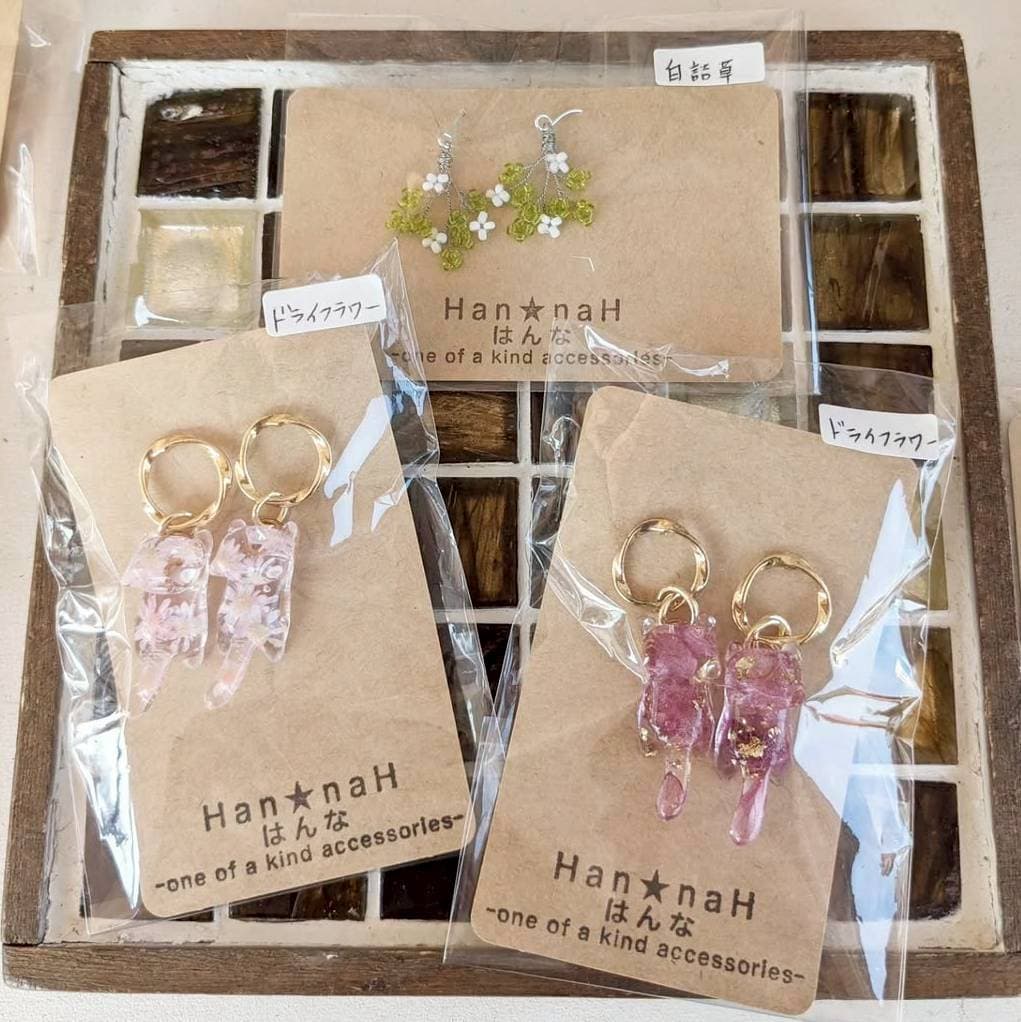 “Daily life on the hand (日常を手のひらサイズに)”をコンセプトに、フラワーモチーフのアクセサリーや、自家製のドライフラワーを使用したアクセサリーをお持ちします。