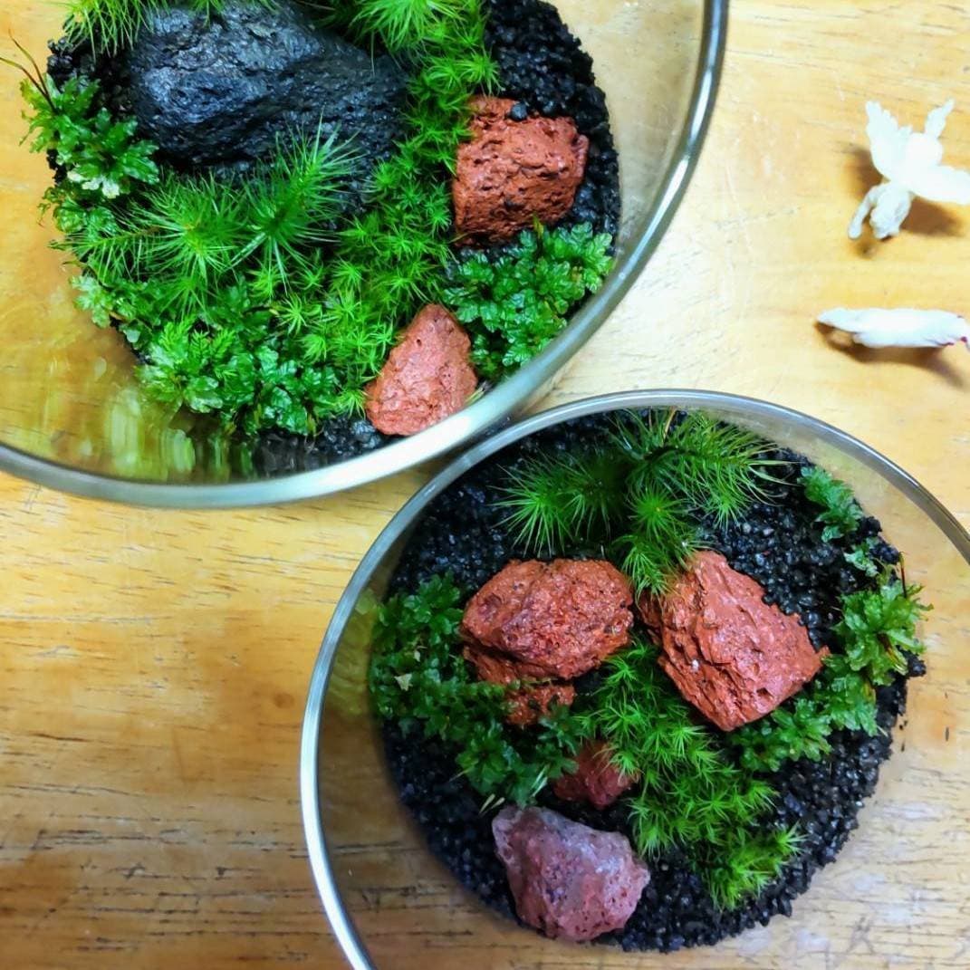 苔テラリウム製作!初心者さん向けの苔をお持ちします。苔、初めての方も以前作ったんだけど調子悪いのよね…の方もぜひどうぞ。相談やリペアも承ります!他店でのモノでも大丈夫、現物お持ちくださいね。
