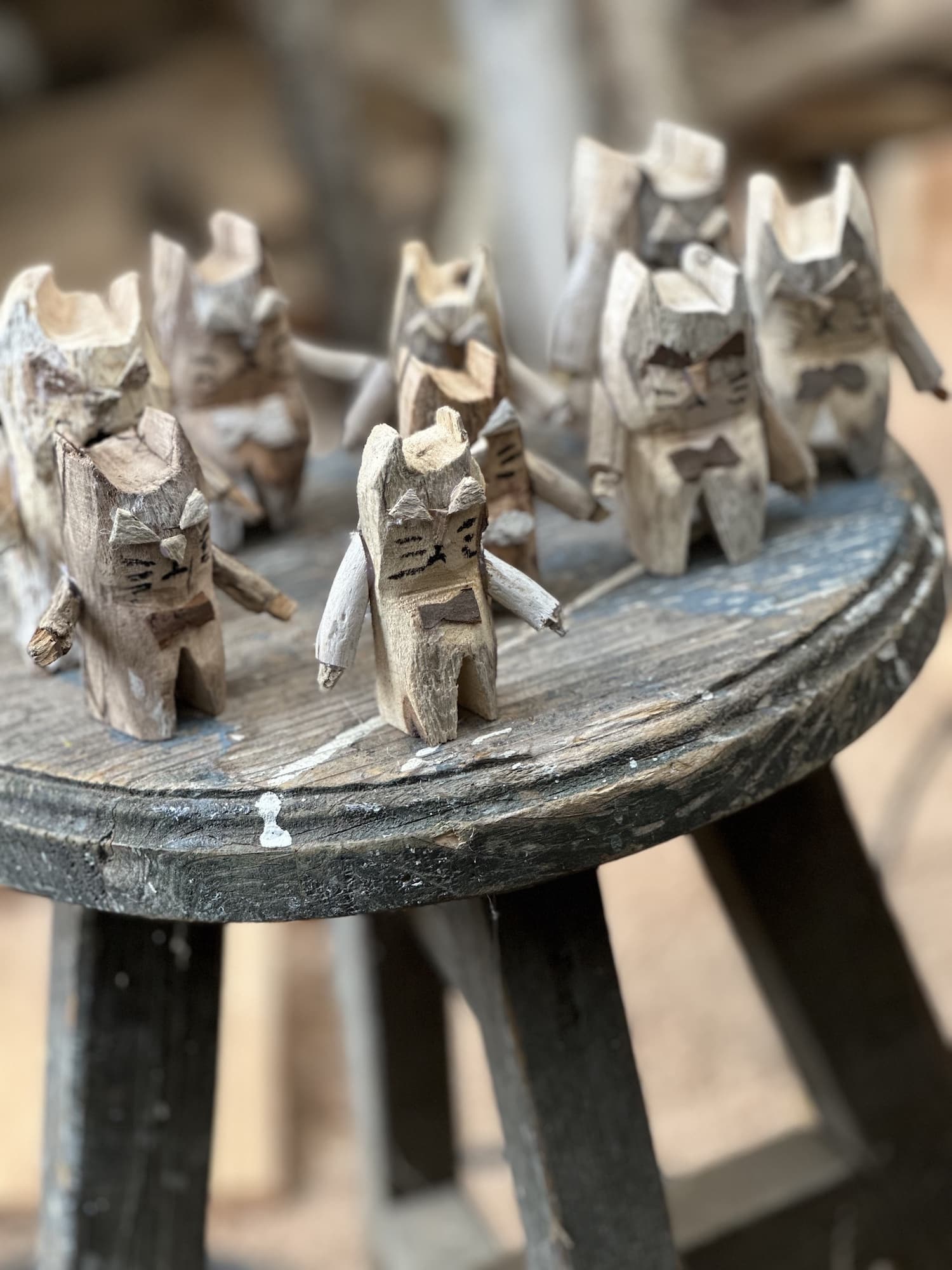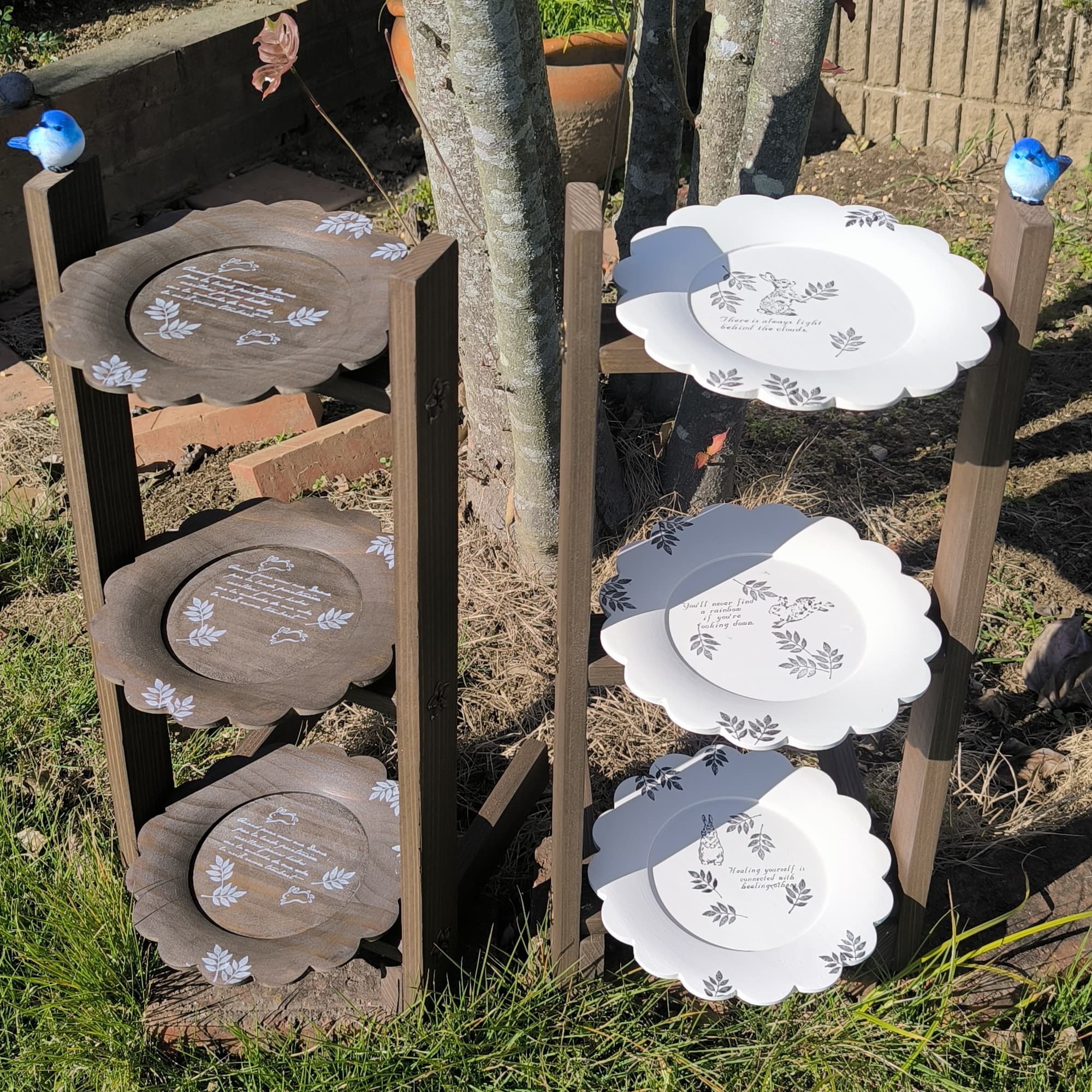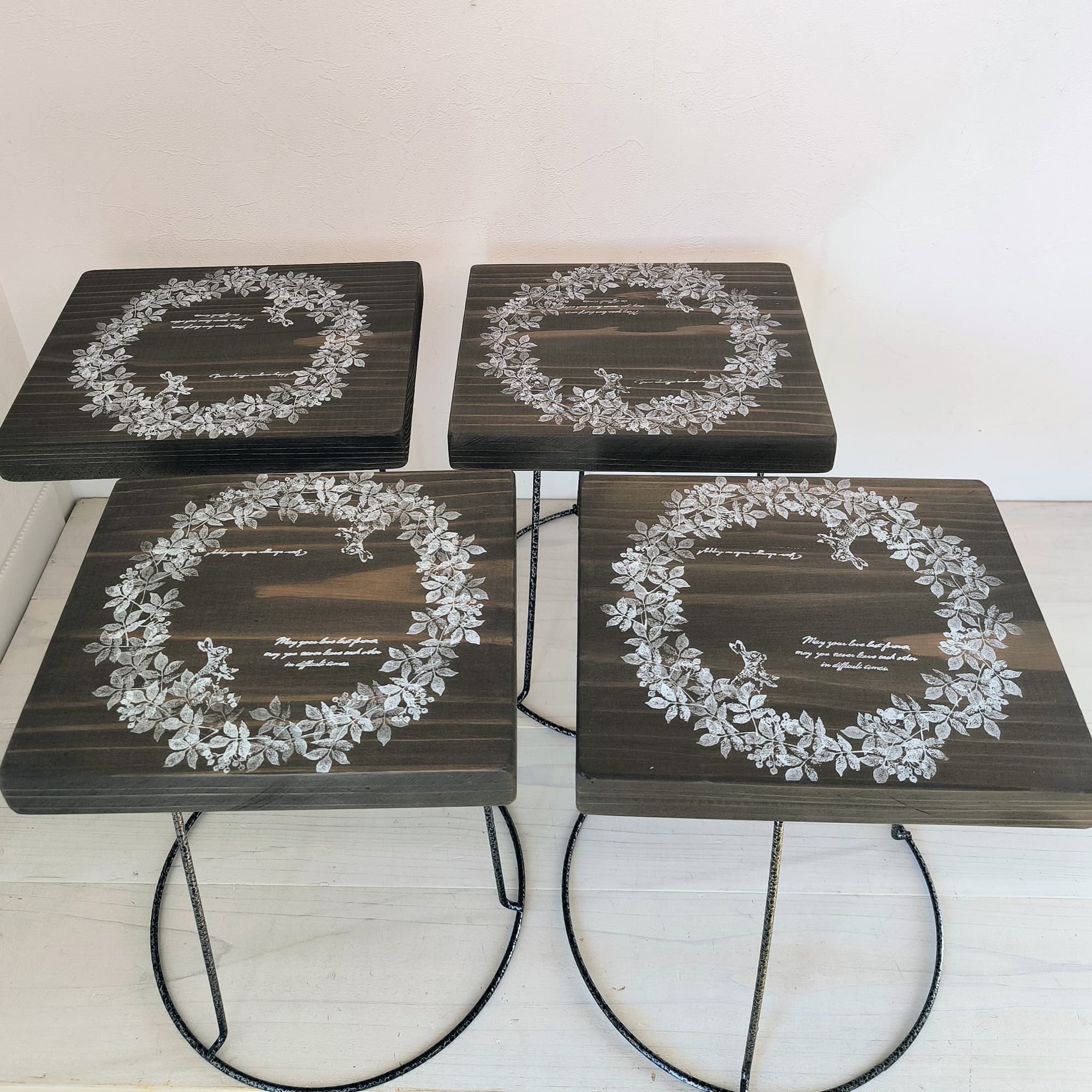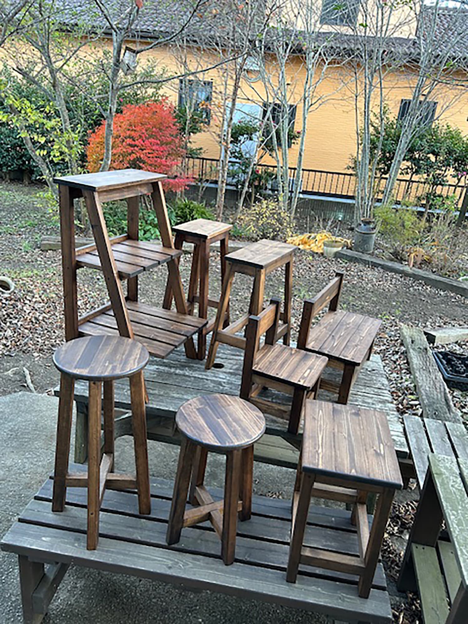 30種以上の木で作った花台、飾台等。