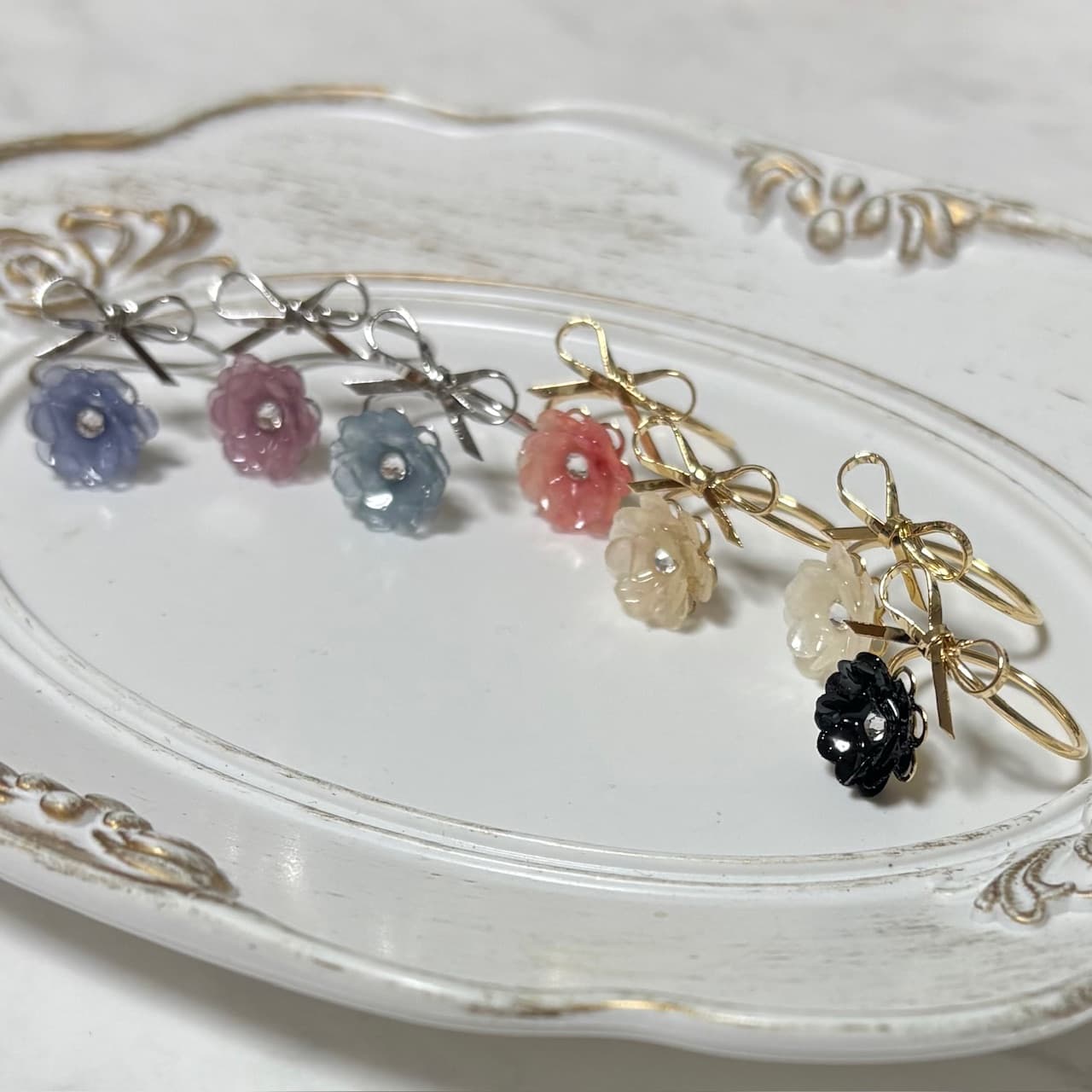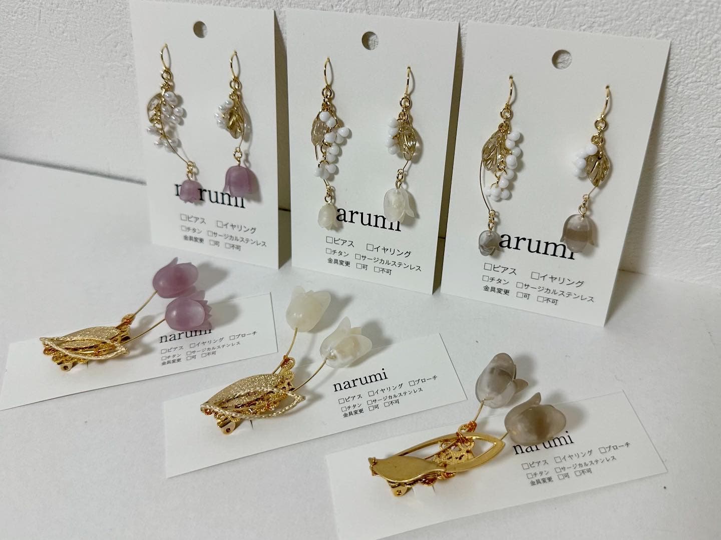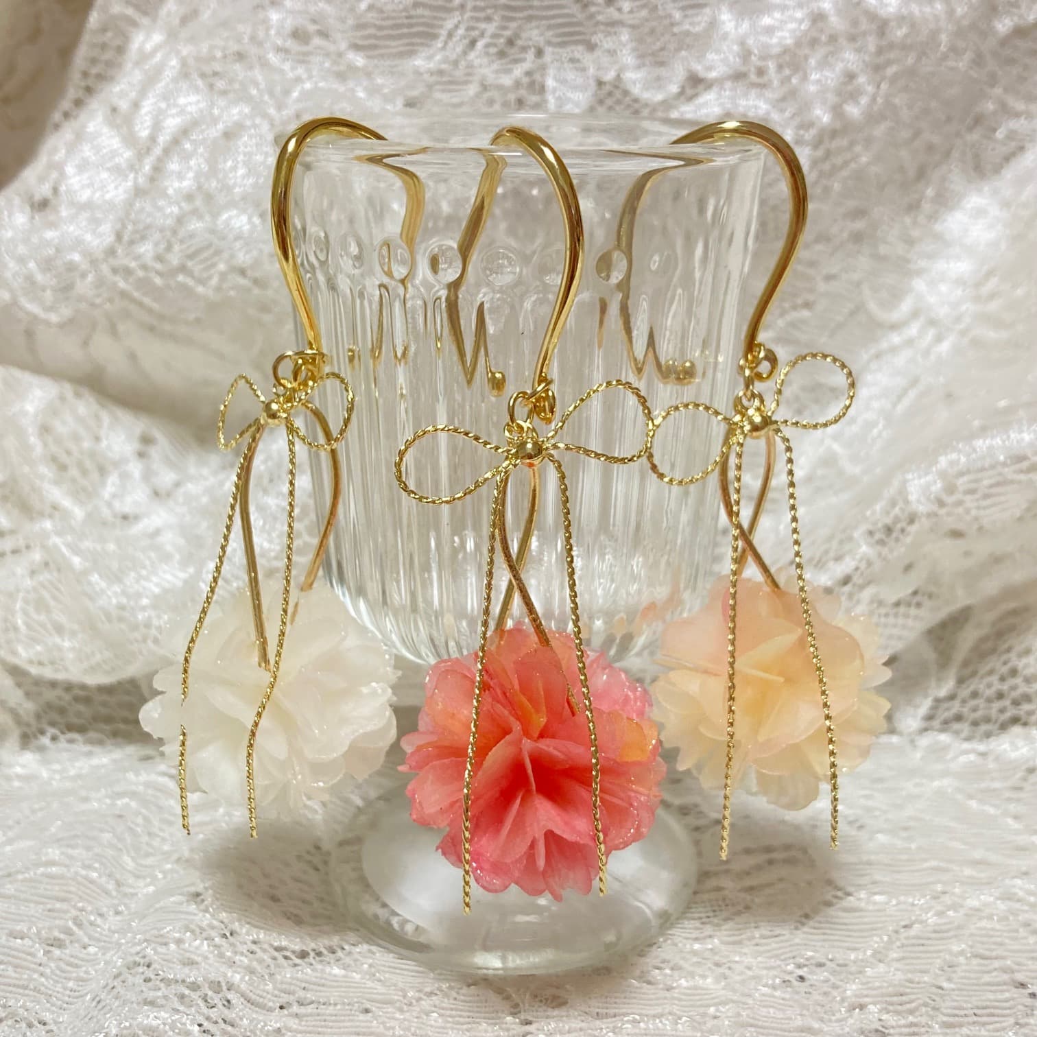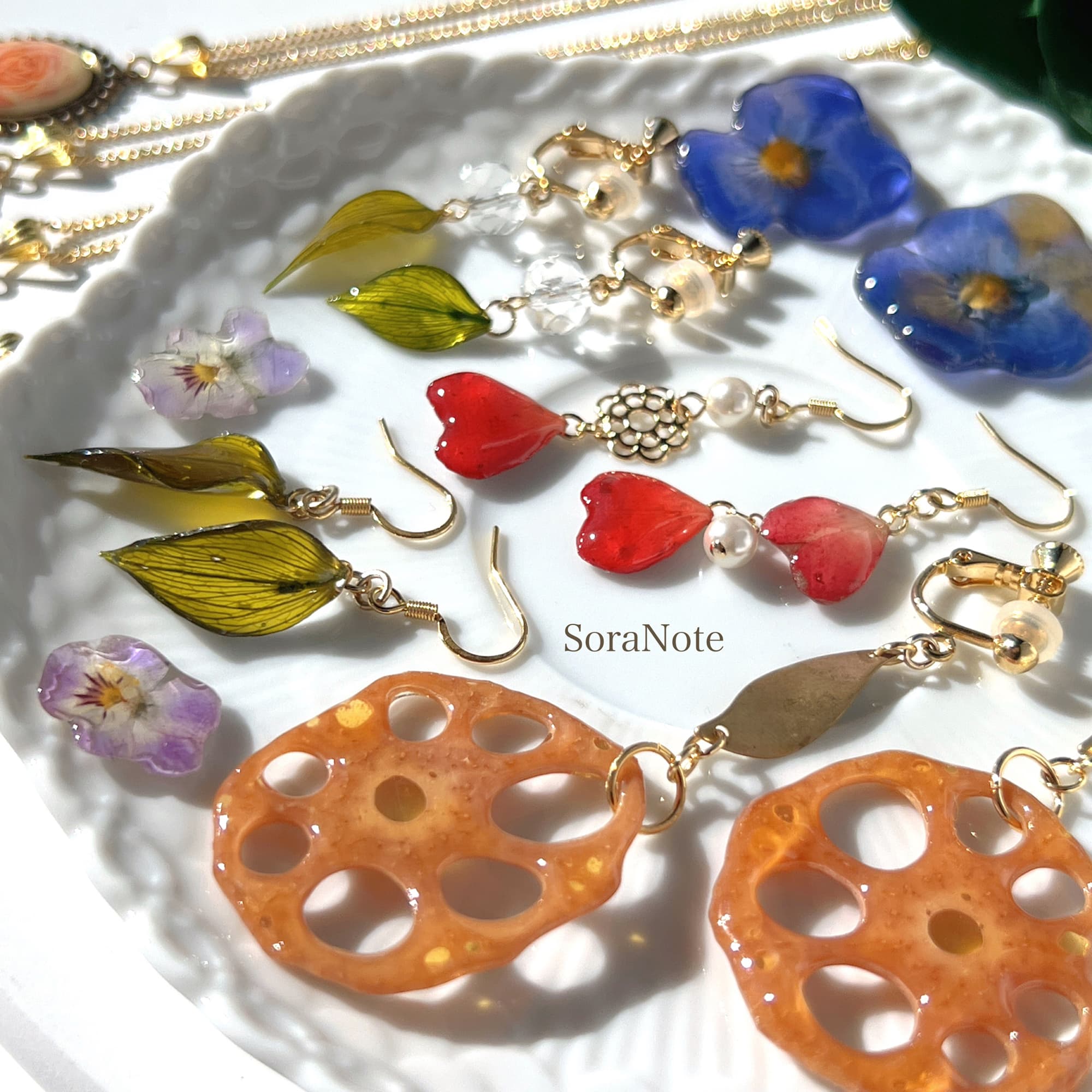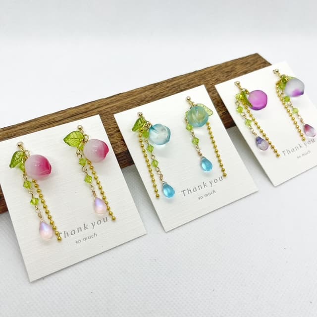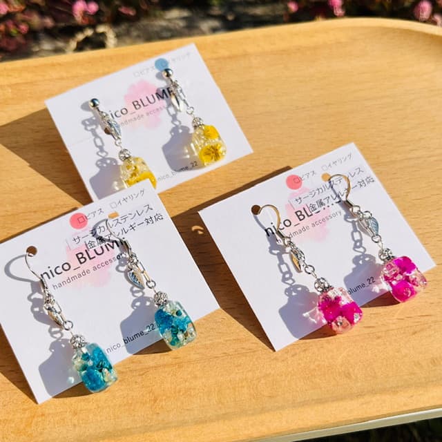 フラワーモチーフのアクセサリー、ドライフラワーアクセサリー