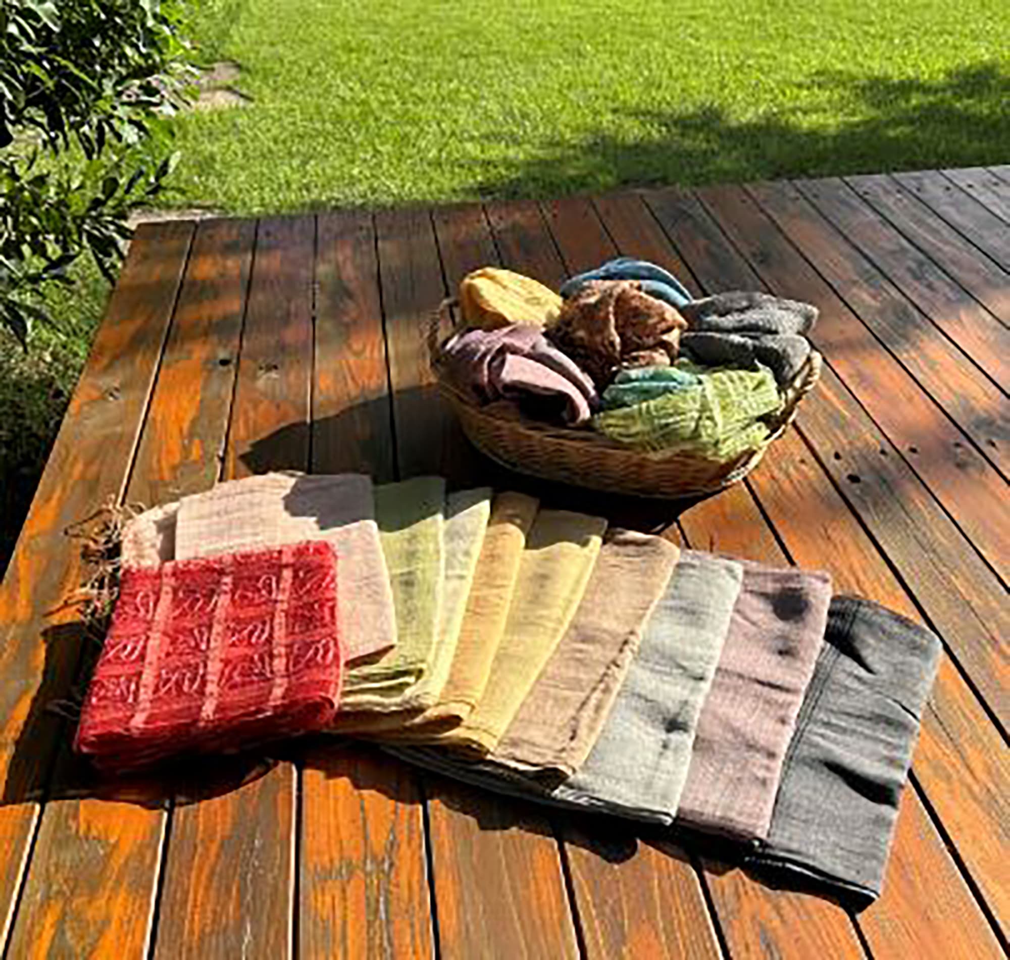 身の周りの植物から色をいただいています。四季折々の草木染の色に自然を身近に感じていただければと思っています。