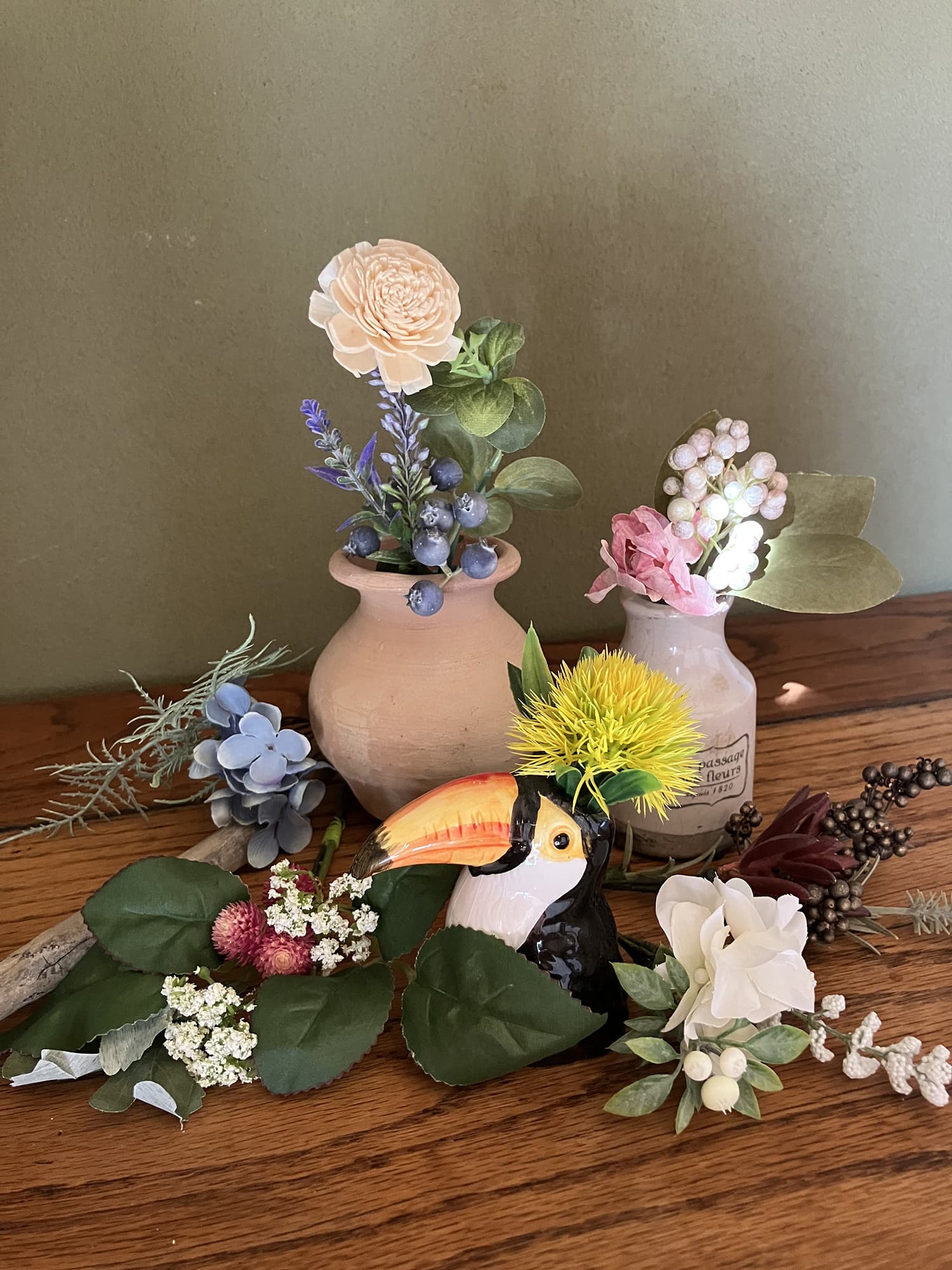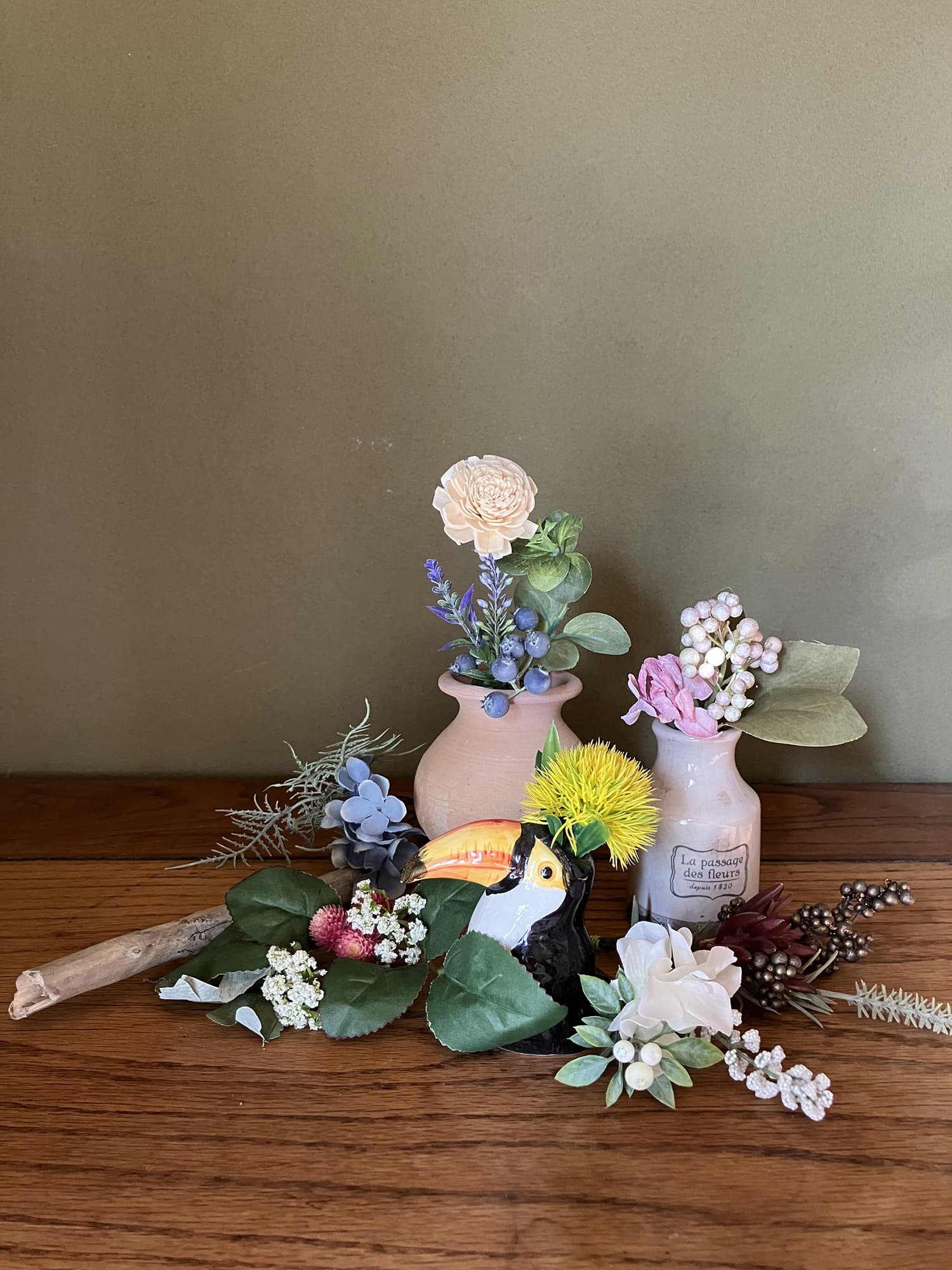 リアルな造花…アーティフィッシャルフラワーとちょっぴりジャンクな器たち