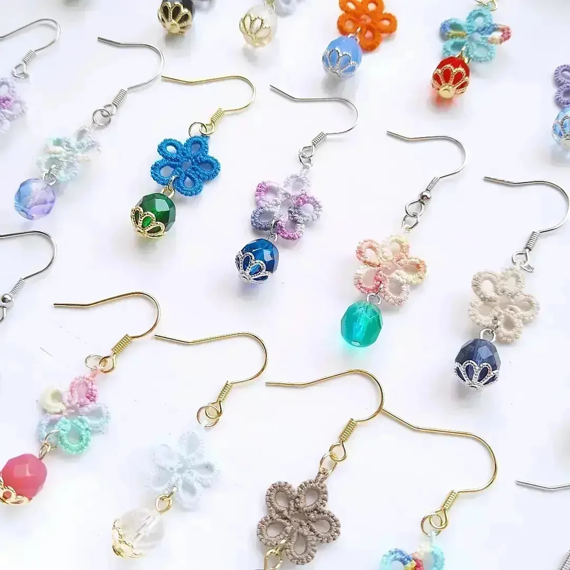1つ1つ手結いしたタティングレースでアクセサリーを製作しています。
