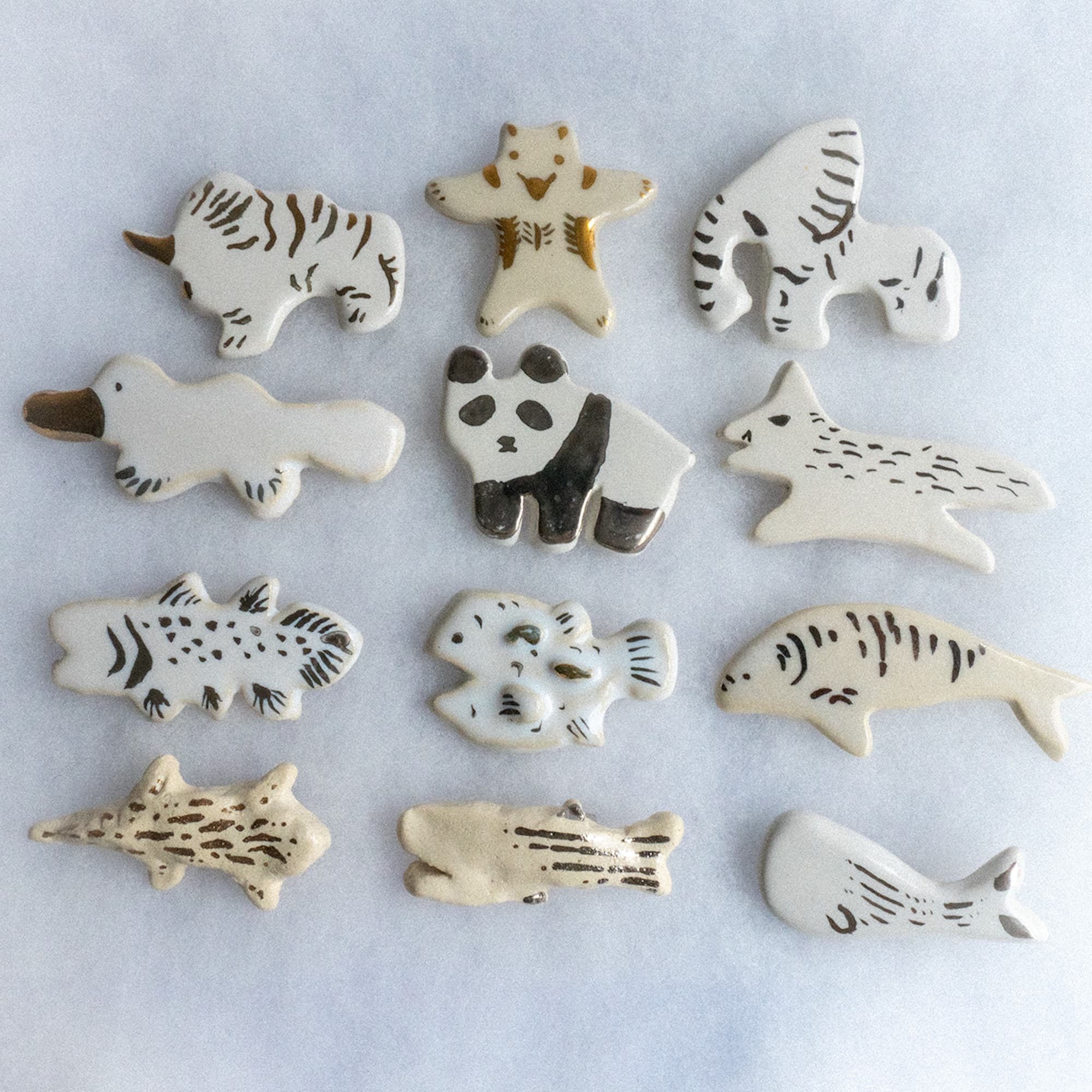 世の中にたくさんのタイルがある中、動物のタイルはあまり見かけないな、という想いからタイルを作るようになりました。一つ一つ手作りした、かわいい動物の立体的なタイルアクセサリー。手触りや艶感を楽しんでいただけたらうれしいです。ぜひお手に取ってご覧になってください。手作りタイルを使って作れるタイルクラフトワークショップも開いています。