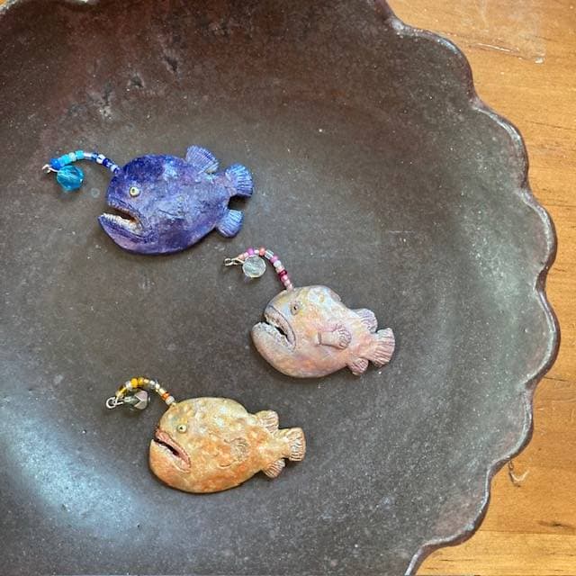 色々な粘土を使って、ブローチやオブジェなどを作っています。また、トートバッグなどにイラストを描いています。どれも独創的な一点物。他にないものをお探しの方、ぜひ、遊びにいらしてくださいね。