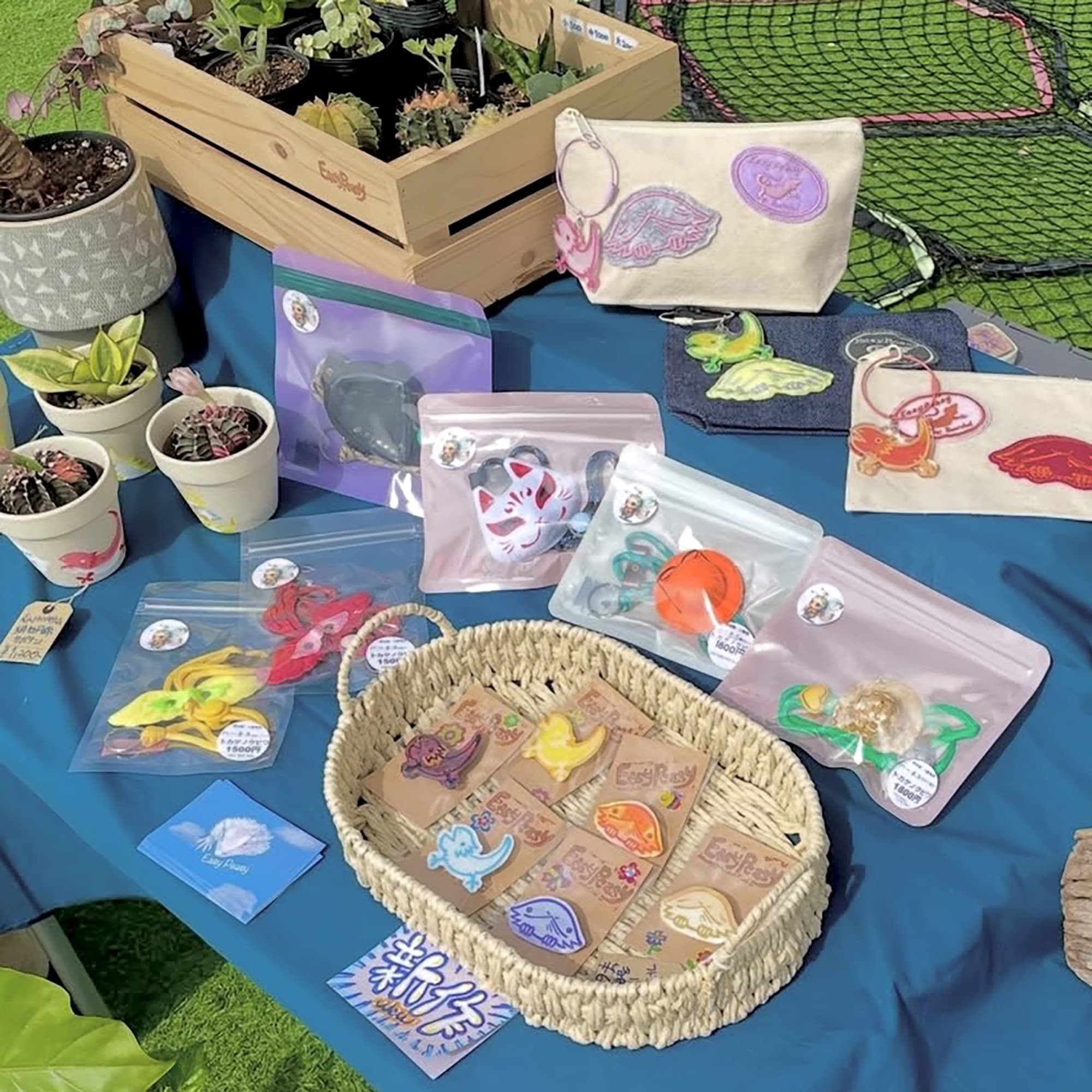 保護猫活動に協賛しボランティアショップへの作品提供からスタートしました。今ではポップアップストアやマルシェなどに積極的に参加しています。可愛いと感じてもらえるようなグッズ制作を心がけています。