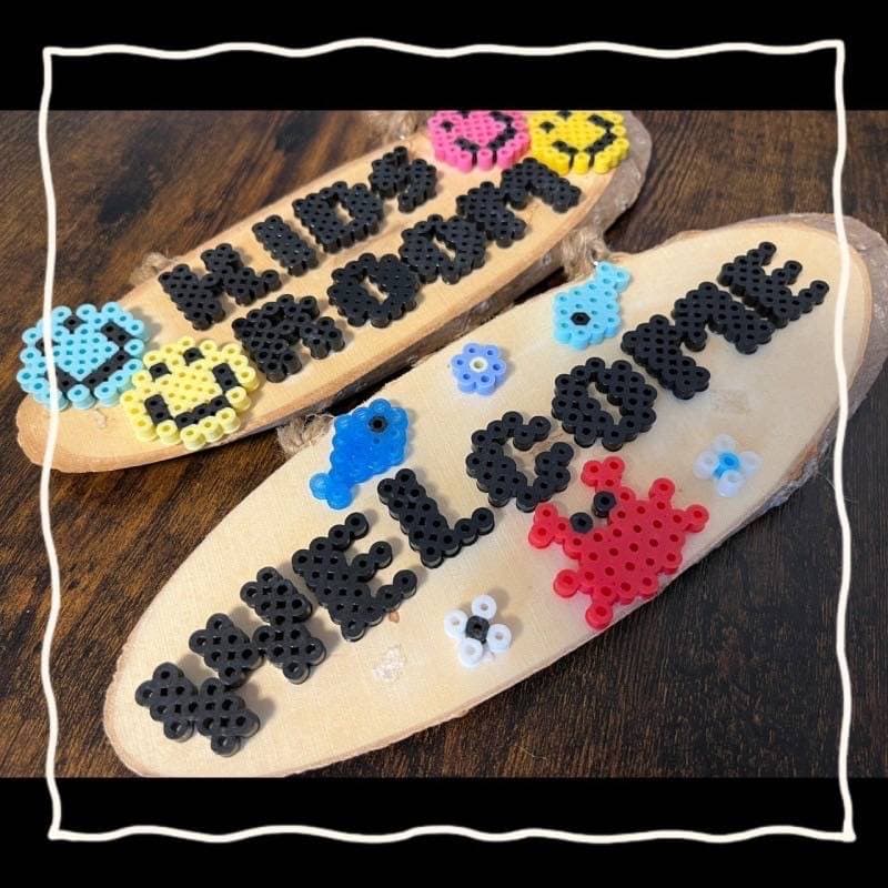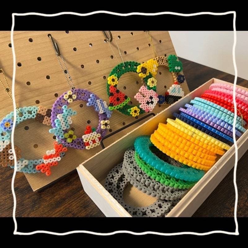 クラフトバンドで普段使いできるバック、収納などにも使えるかご、小物など沢山作っています。ワークショップではアイロンビーズパーツを使ってプレートやリースチャームが作れます。是非お立ち寄りください。