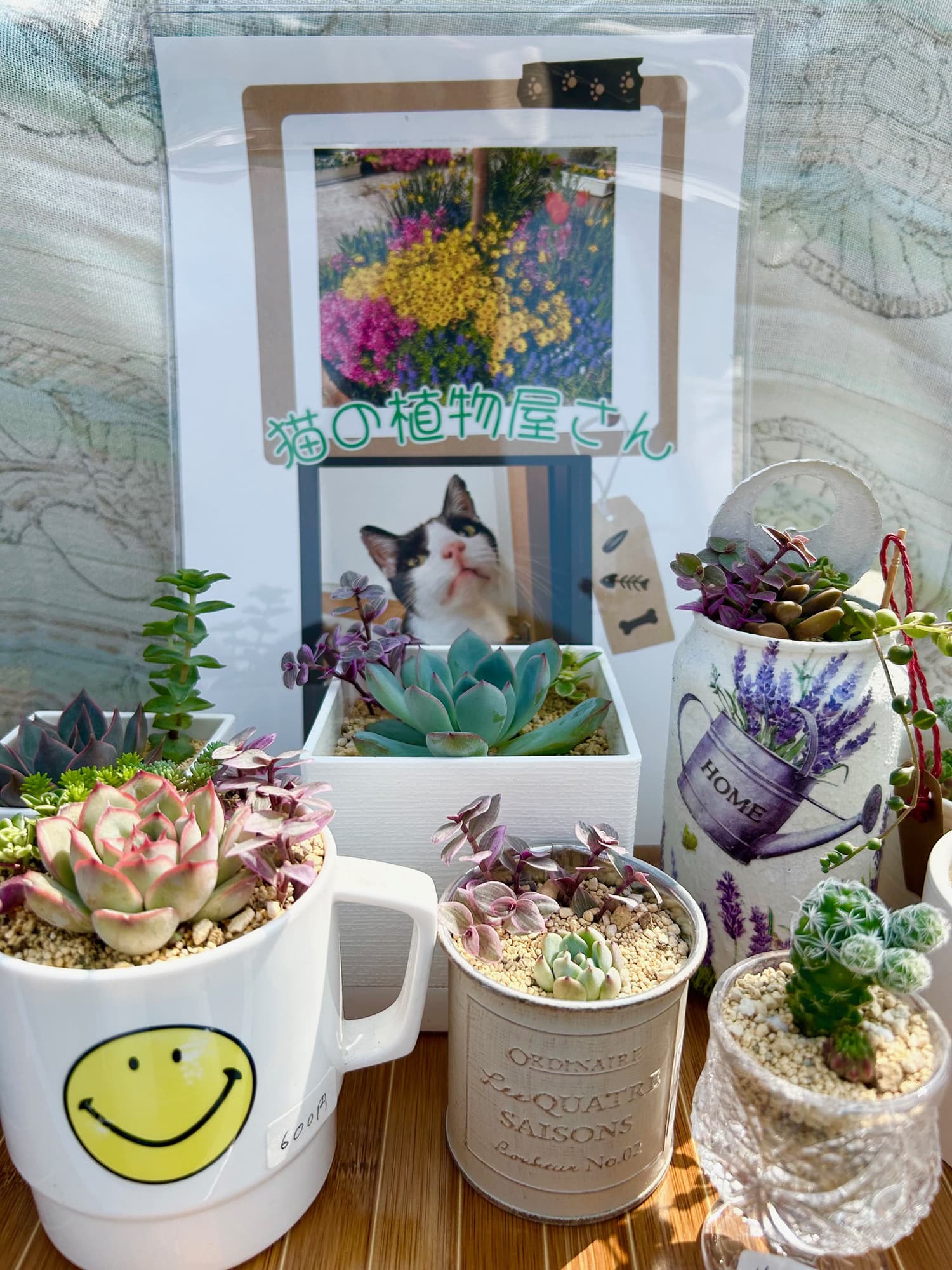 可愛い猫雑貨、猫のおもちゃ、多肉植物等を扱っております動物達と自然を大切にをテーマに活動しています。売り上げは保護猫活動へ寄付させて頂いております