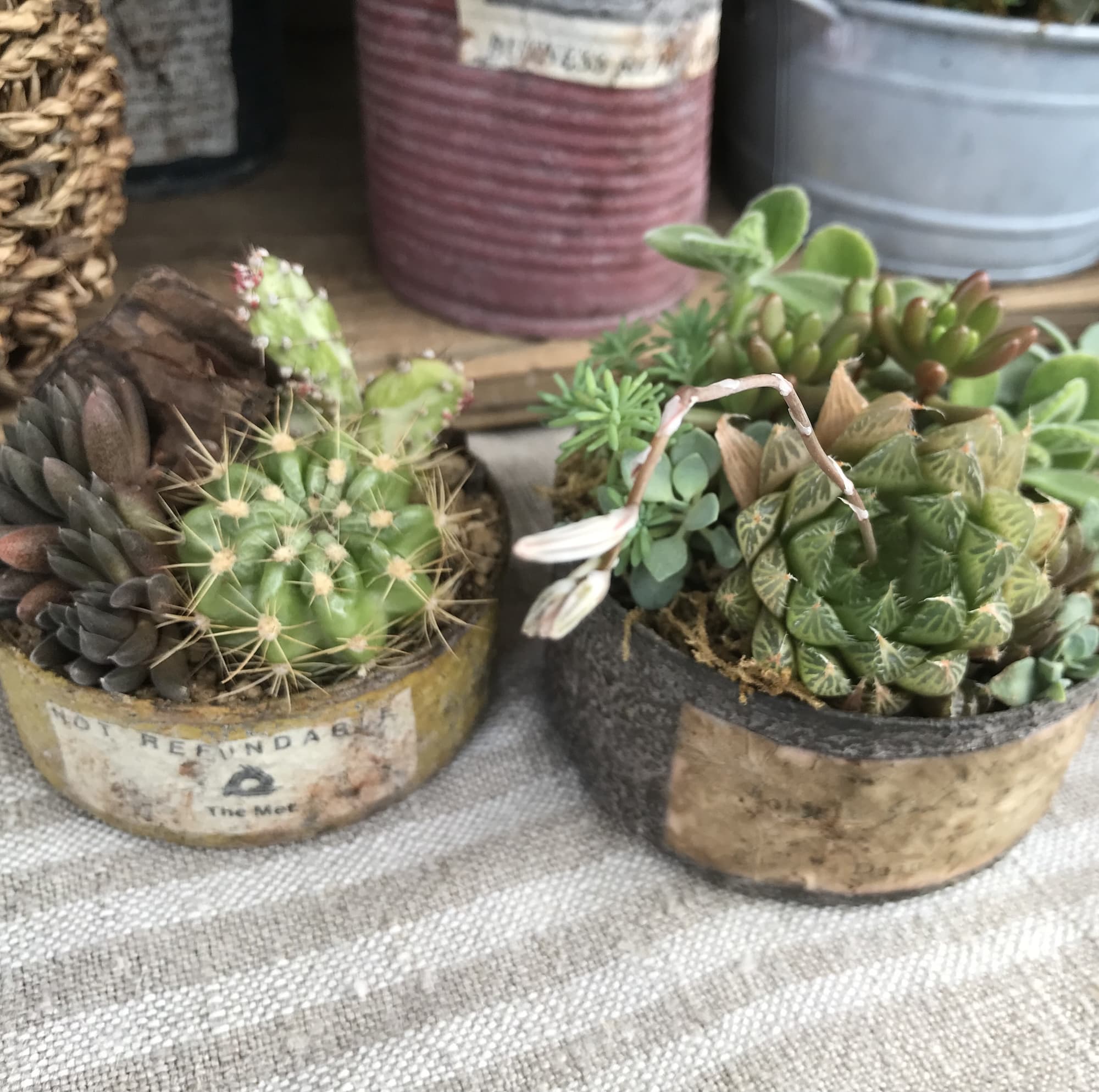 多肉植物やサボテンの寄せ植えや、インドアグリーンをご用意しております。リメ缶リメ鉢ピックやプランツハンガー等のガーデン雑貨は、ジャンクナチュラルで雰囲気作りにもお勧めです。ぜひお手に取ってご覧ください。