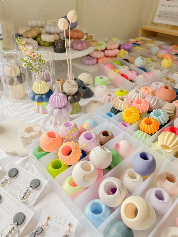 "日常の中にワクワクを"をコンセプトに様々な樹脂を使用した個性的で唯一無二のアクセサリーやインテリア雑貨を制作しています。型からこだわり、海外の作家の方から取り寄せたり、自身で型取りをしています。日常がワクワクするような作品を是非直接見て触っていただきたいです。