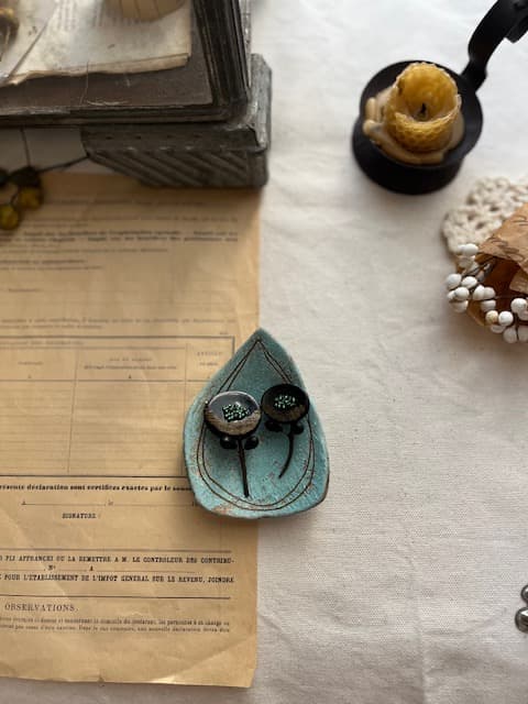 ヴィンテージボタンや真鍮など様々な素材を組み合わせたオリジナルアクセサリー。個性あるデザインでありながら幅広いシーンでもお使いいただけるようなデザインでお届けします。