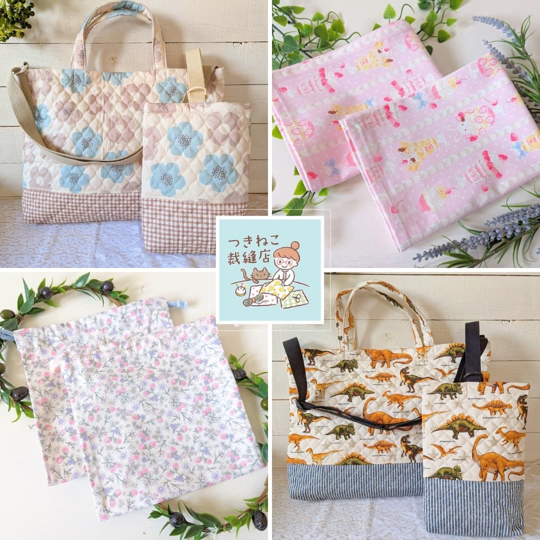 柄×色を楽しみながら、ポーチや巾着袋・各種ケース類など日常で使える布小物を作っております。春の新入学、新学期におすすめな入園入学アイテムをお持ちします♪春カラーな布小物も並びます。