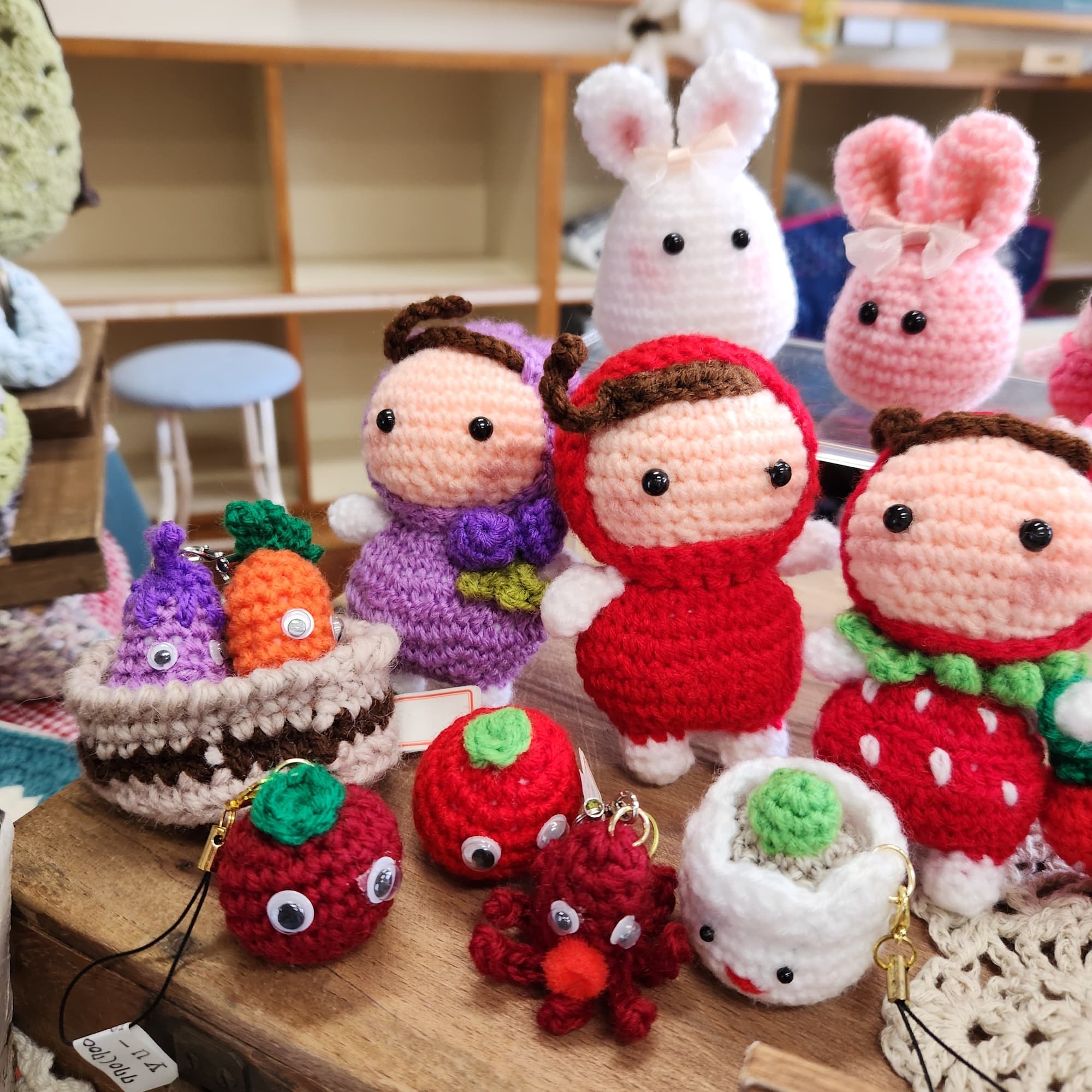 編み物、あみぐるみをしています。イチゴのモチーフを中心に春らしい物をいっぱいお持ちいたします。手にとっていただけたら嬉しいです。宜しくお願いいたします。