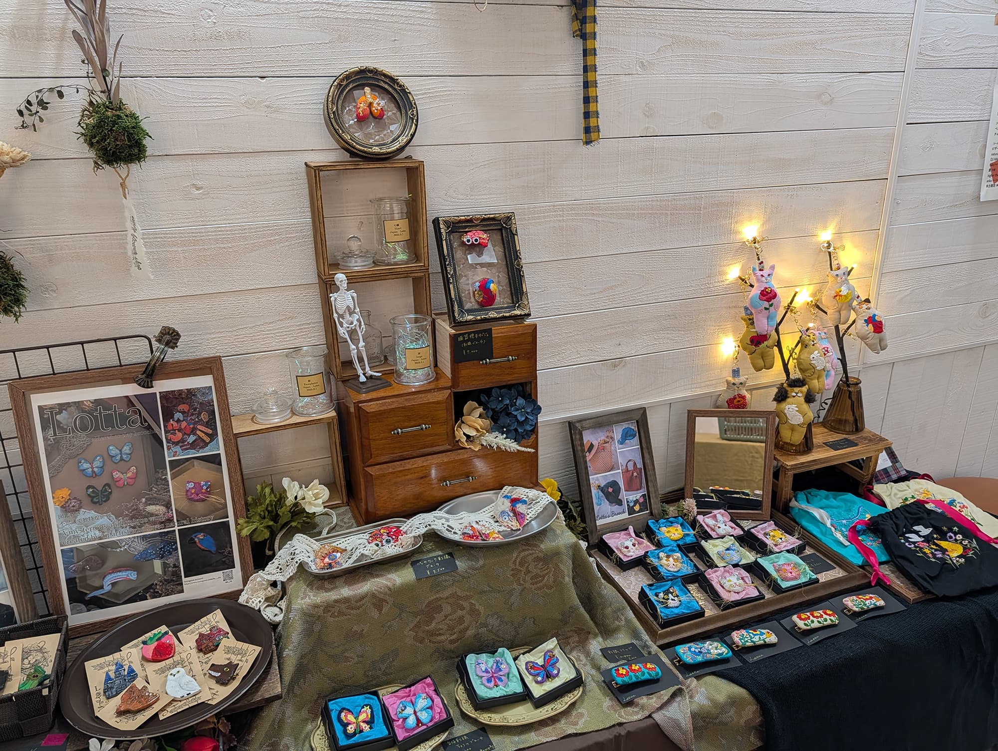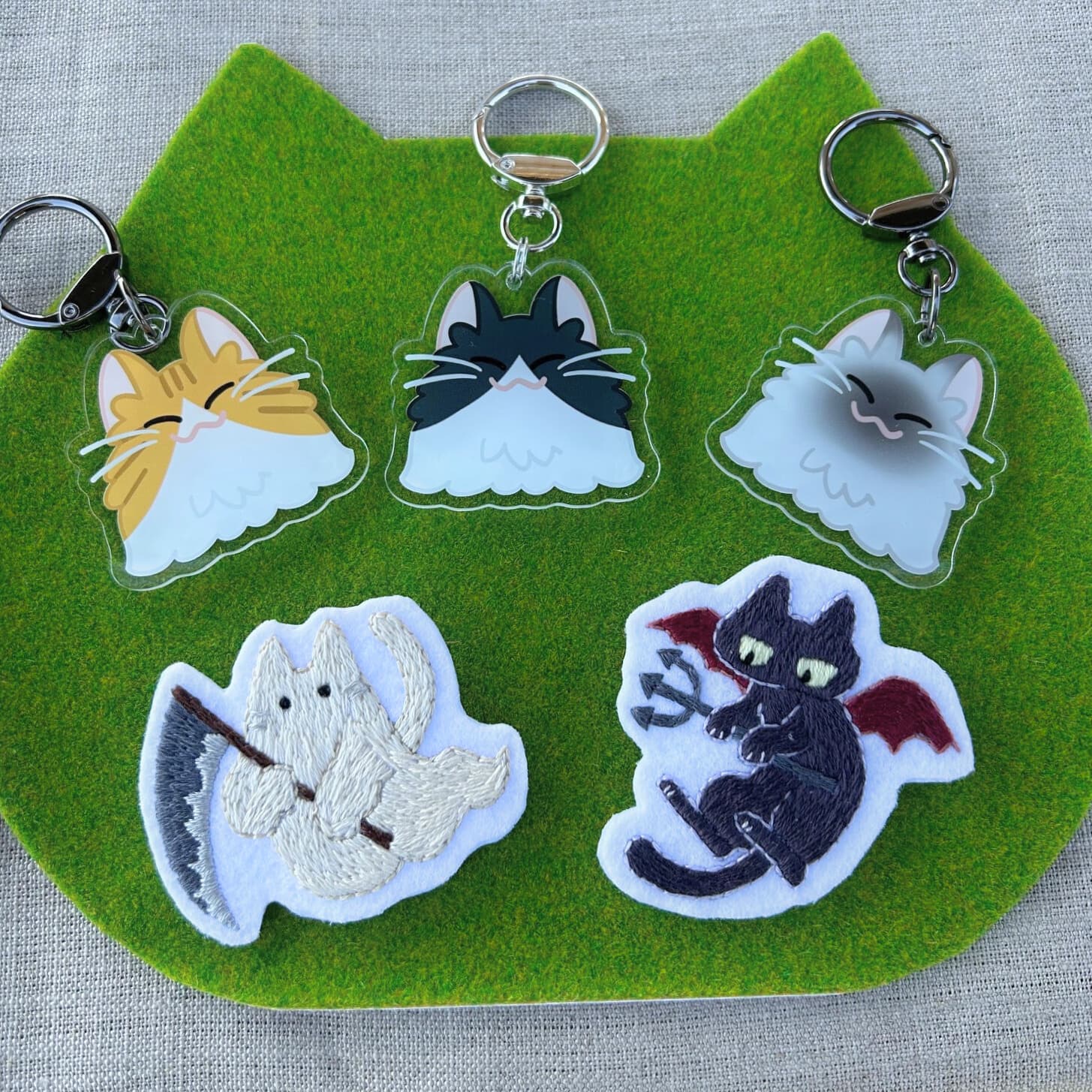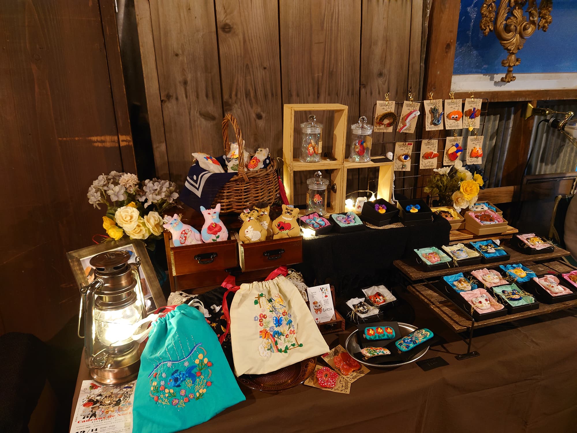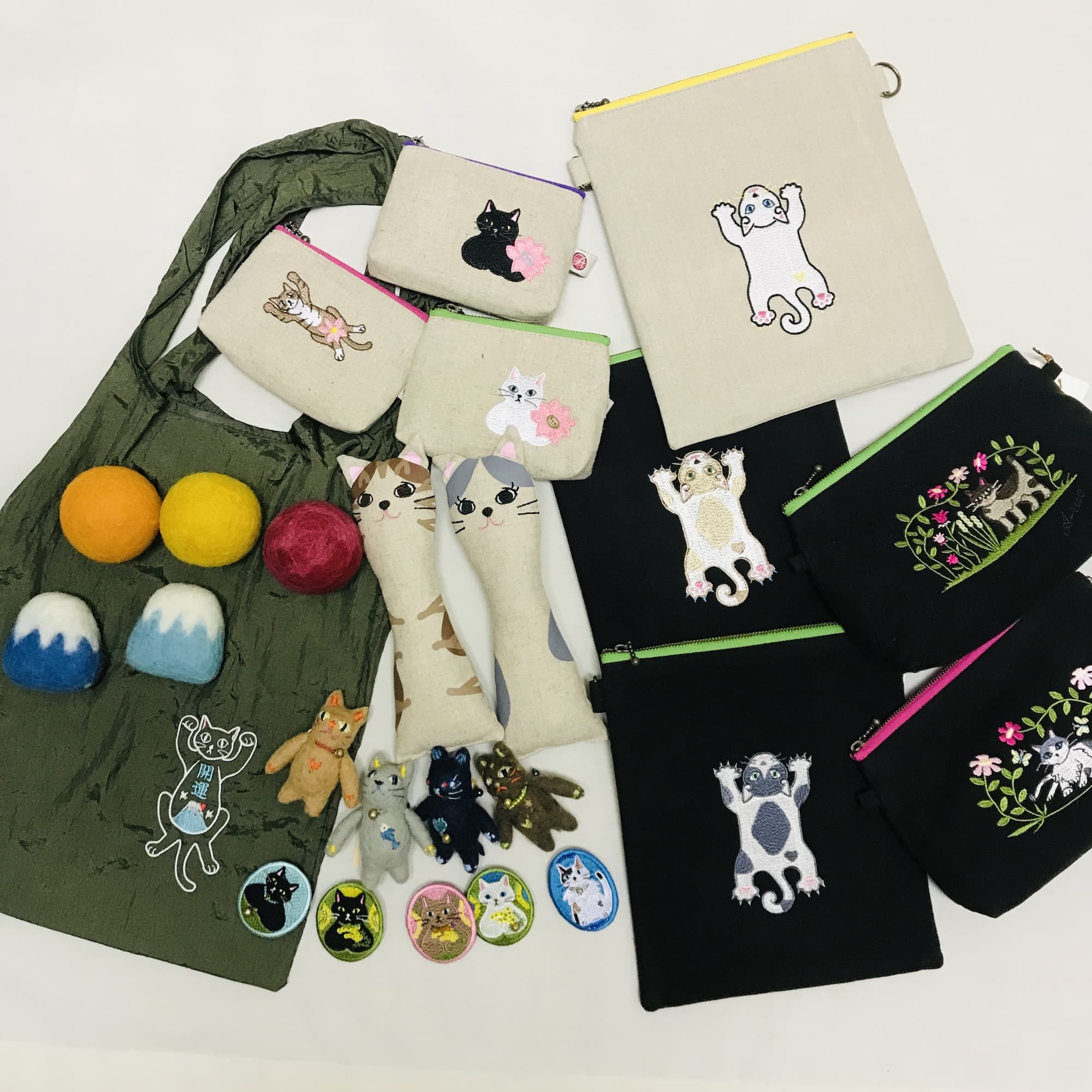 イベントでは、オリジナル刺繍のブローチやサコッシュ、Tシャツ、猫のおもちゃなど、ここでしか出会えないアイテムをお届けします。ぜひ、遊びに来てください。
