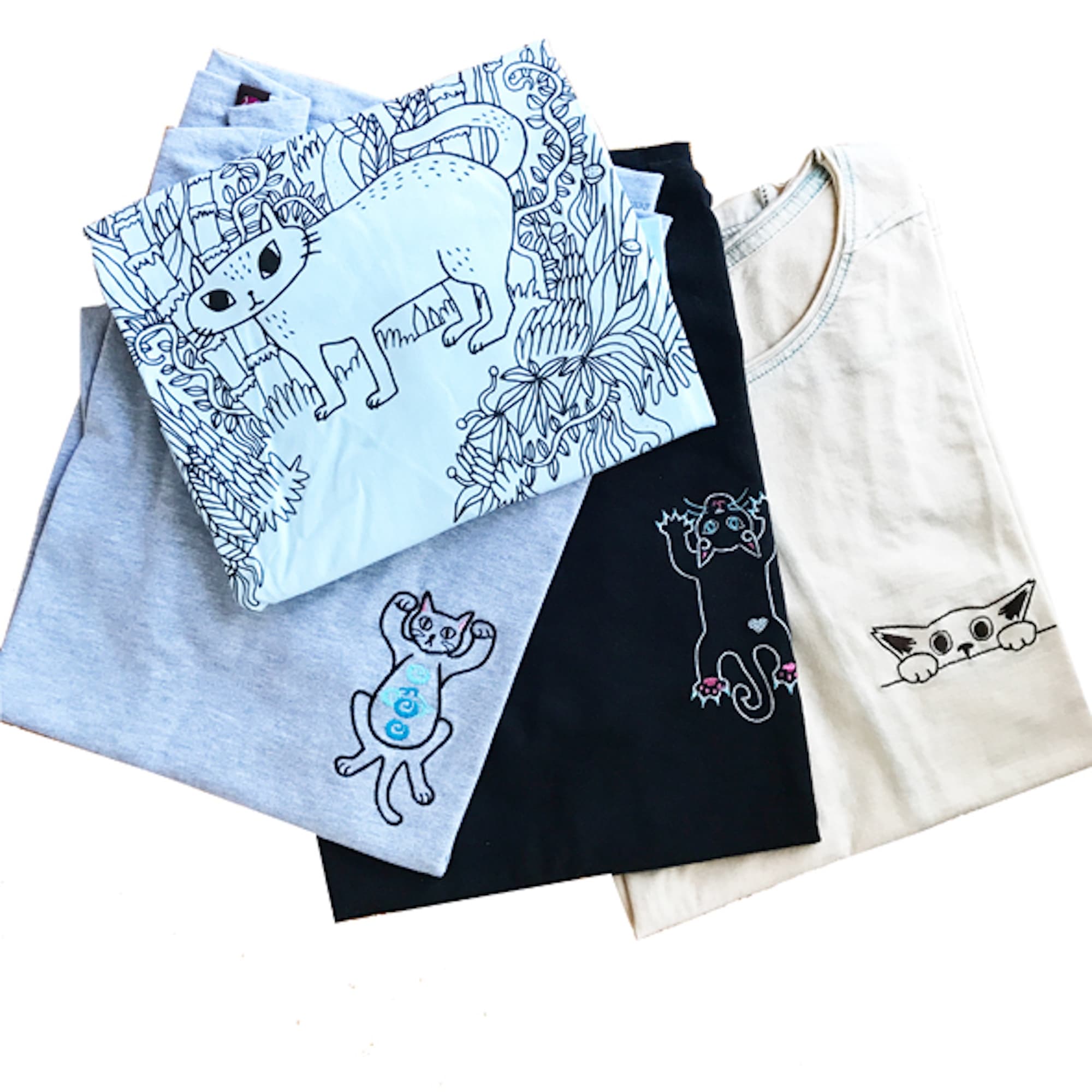 「猫好きのための、スタイリッシュな刺繍雑貨」可愛いだけじゃない、上品で洗練されたデザインの猫モチーフを、日常のファッションになじむ形で表現しています。Tシャツやサコッシュなど、身につけられるアイテムを中心に、ひとつひとつ丁寧に刺繍して仕上げています。