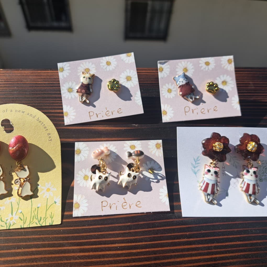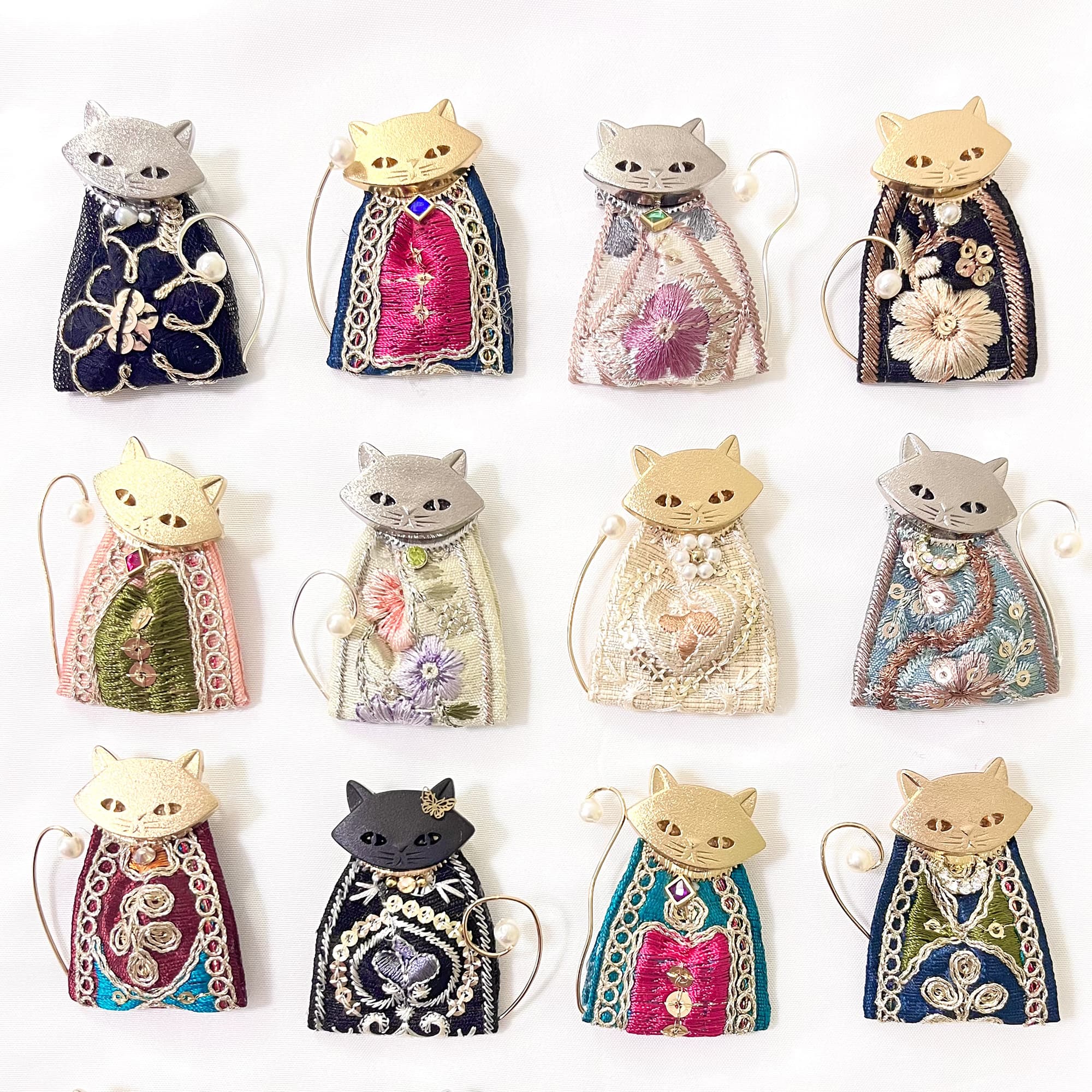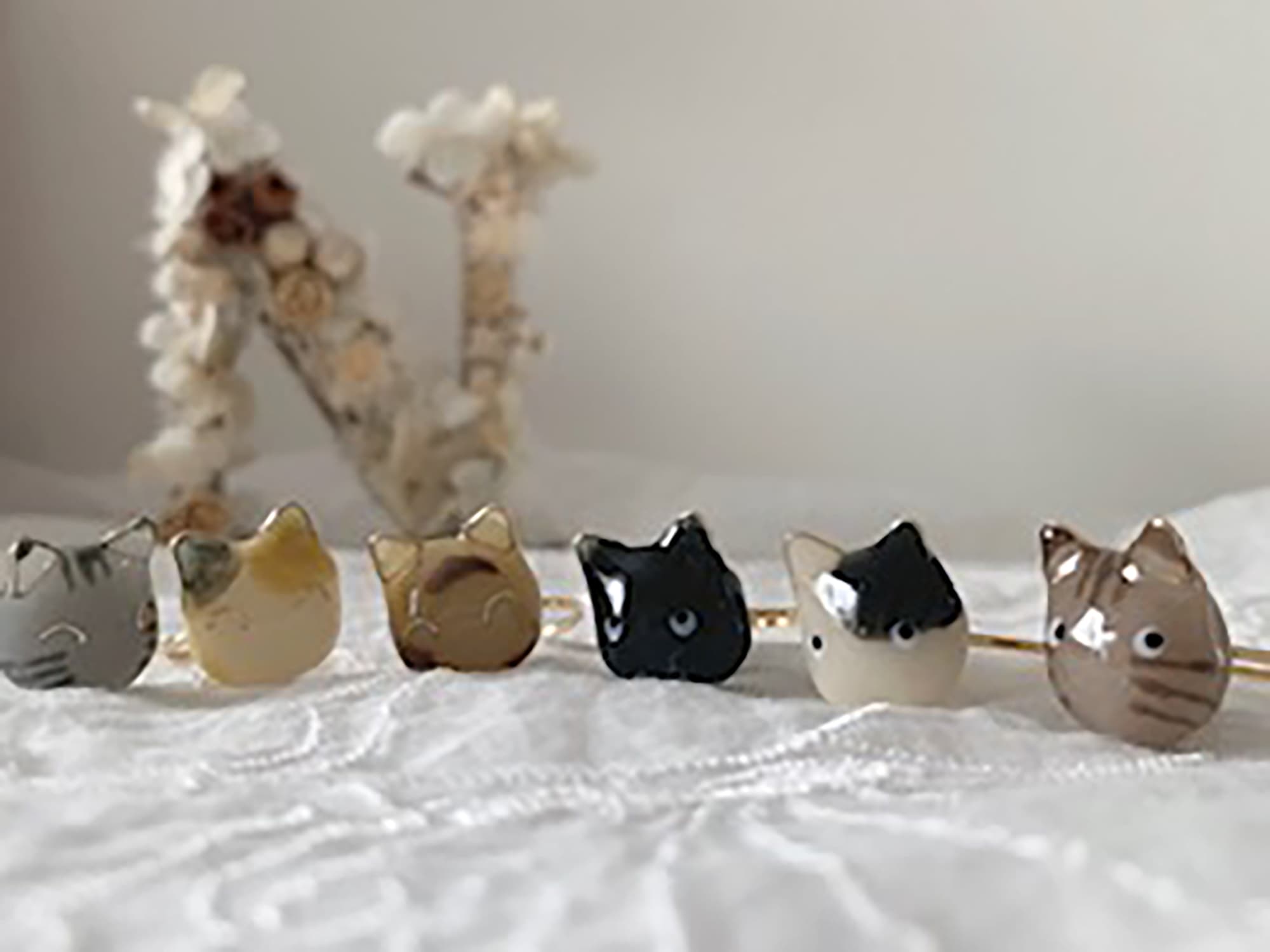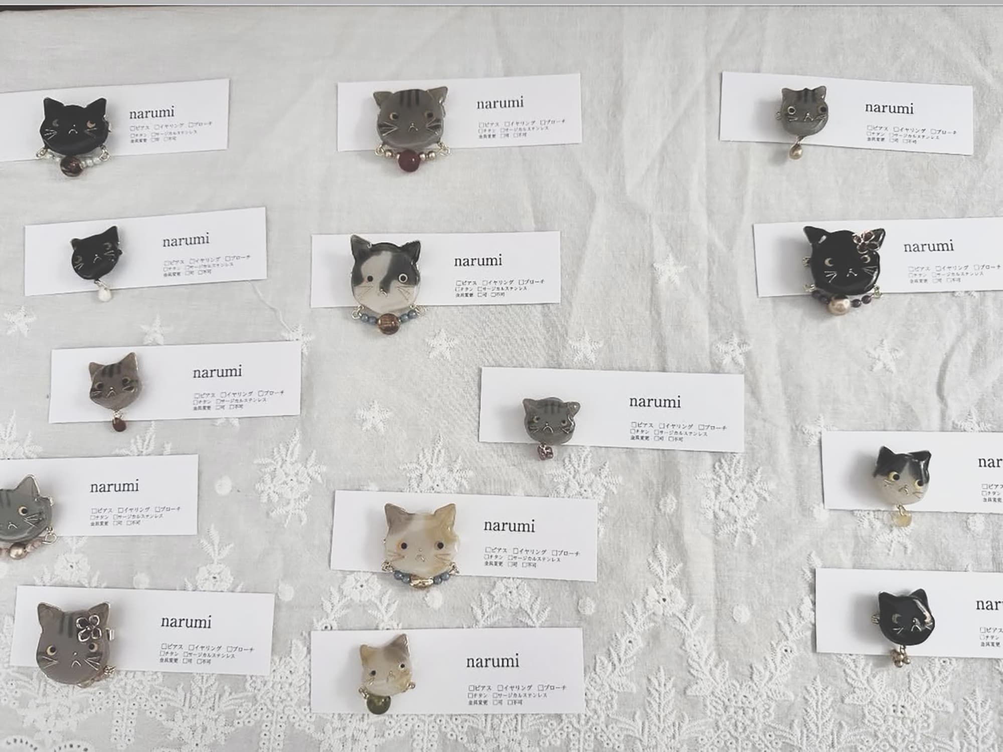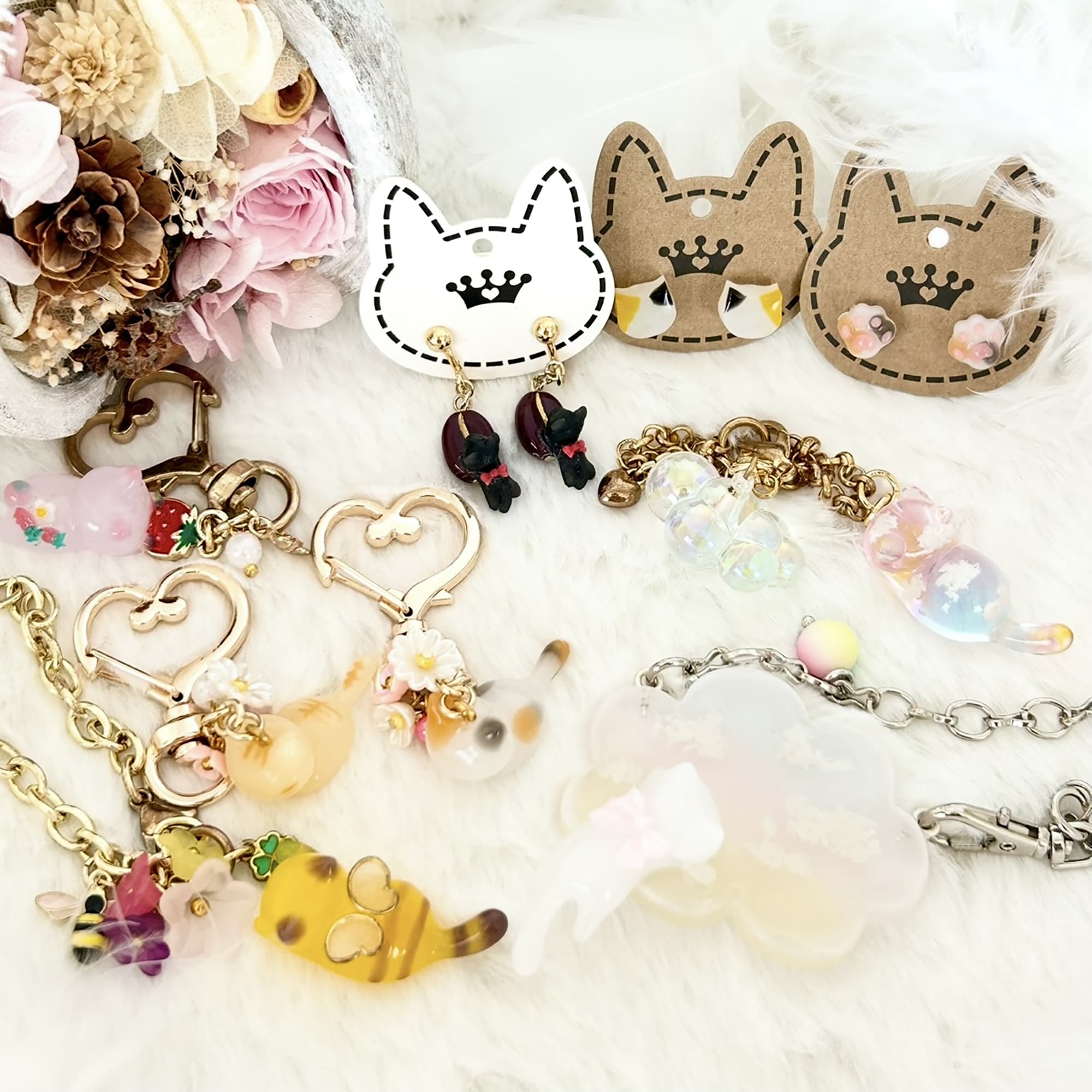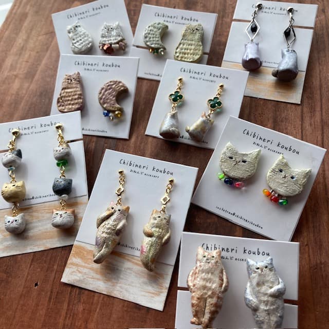 イヤリング、ブローチ、キーホルダーなど…お好みの形で、日々のお出かけに小さな猫を一緒に連れて行ってください。