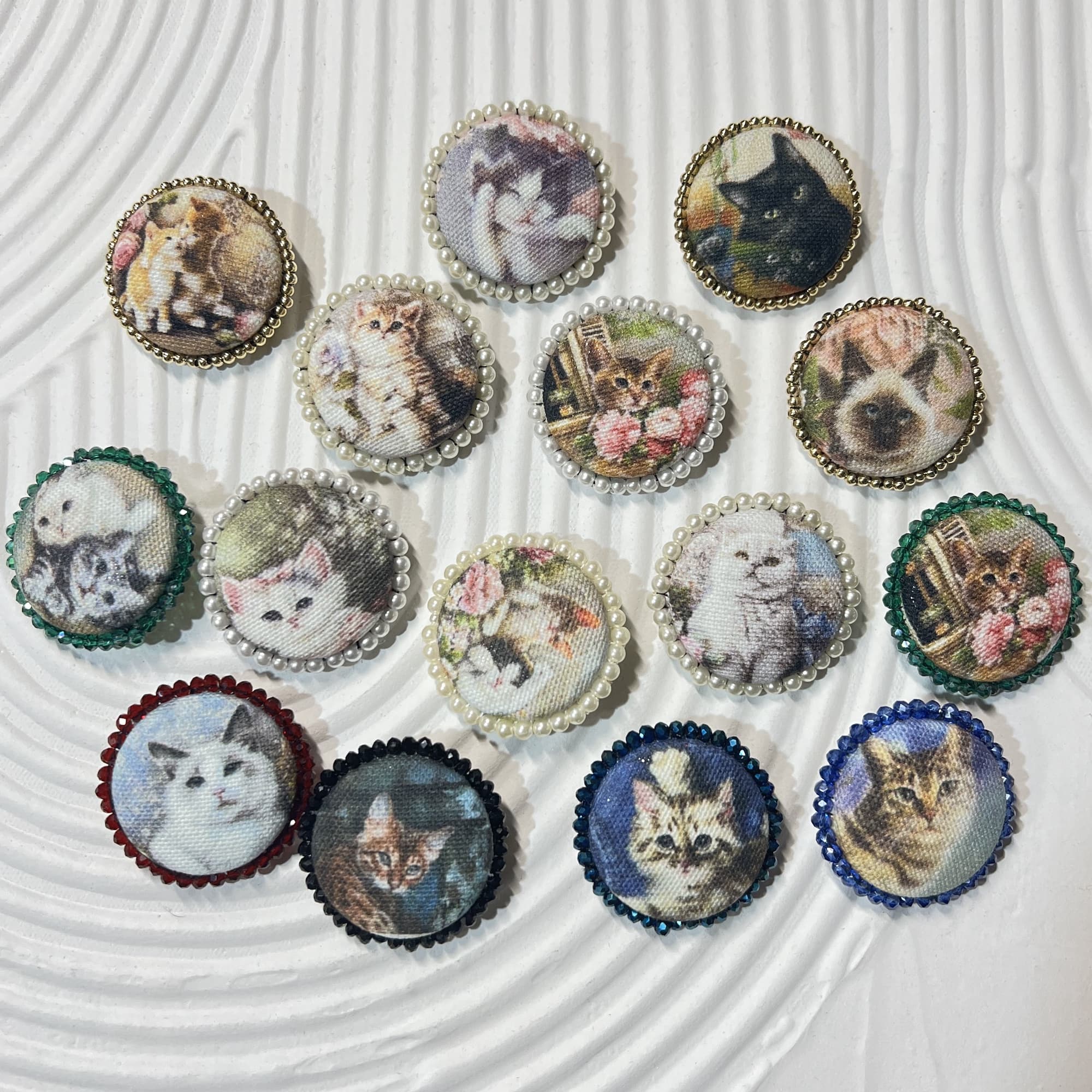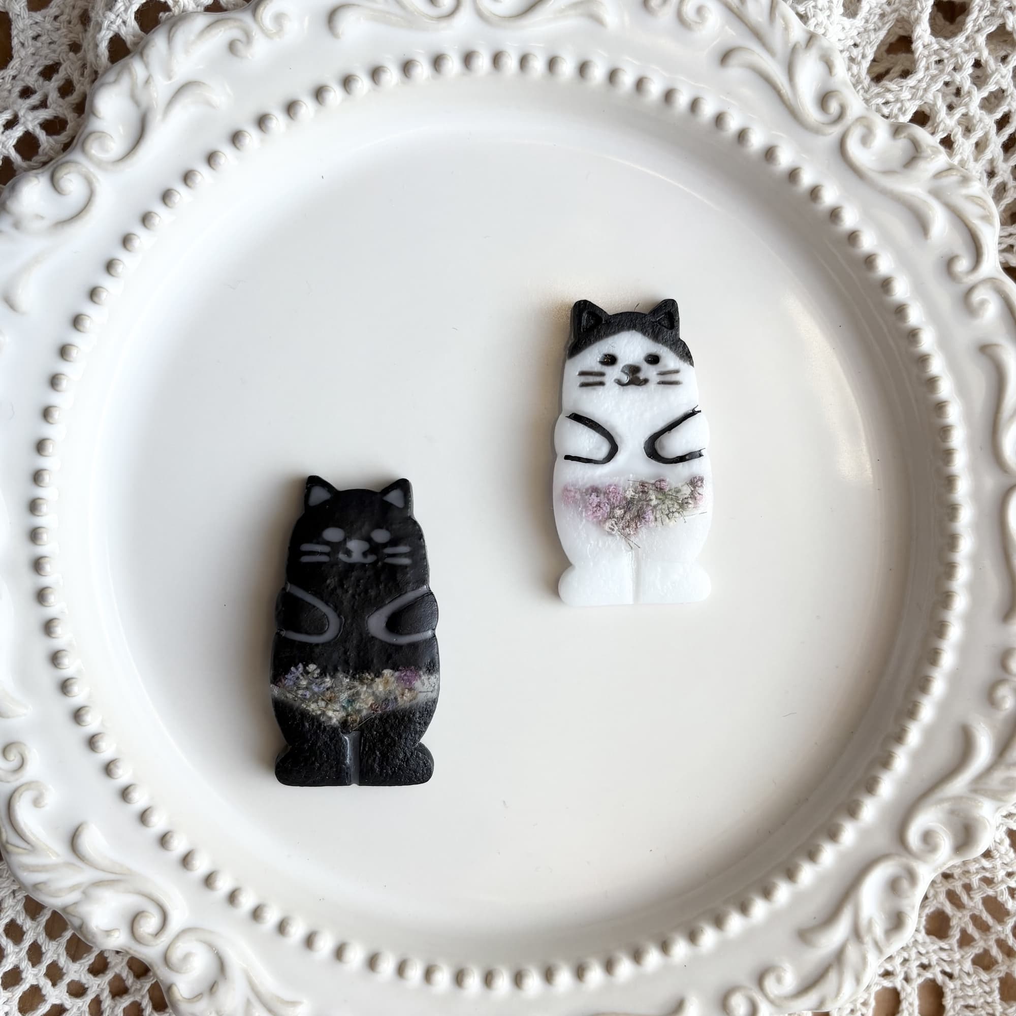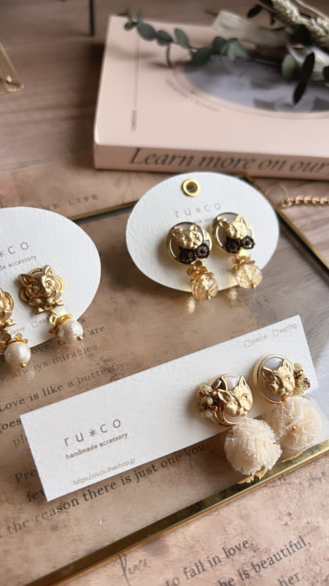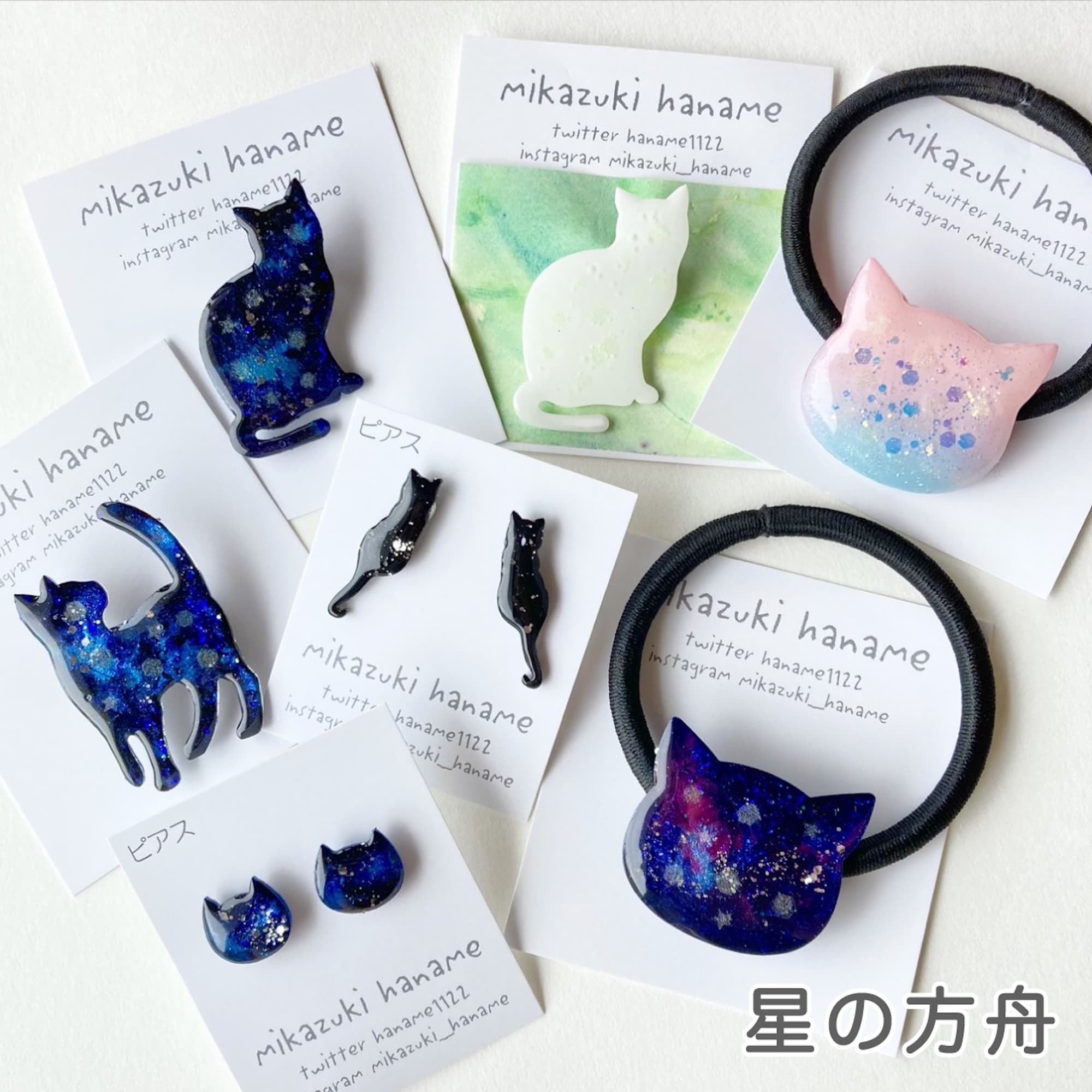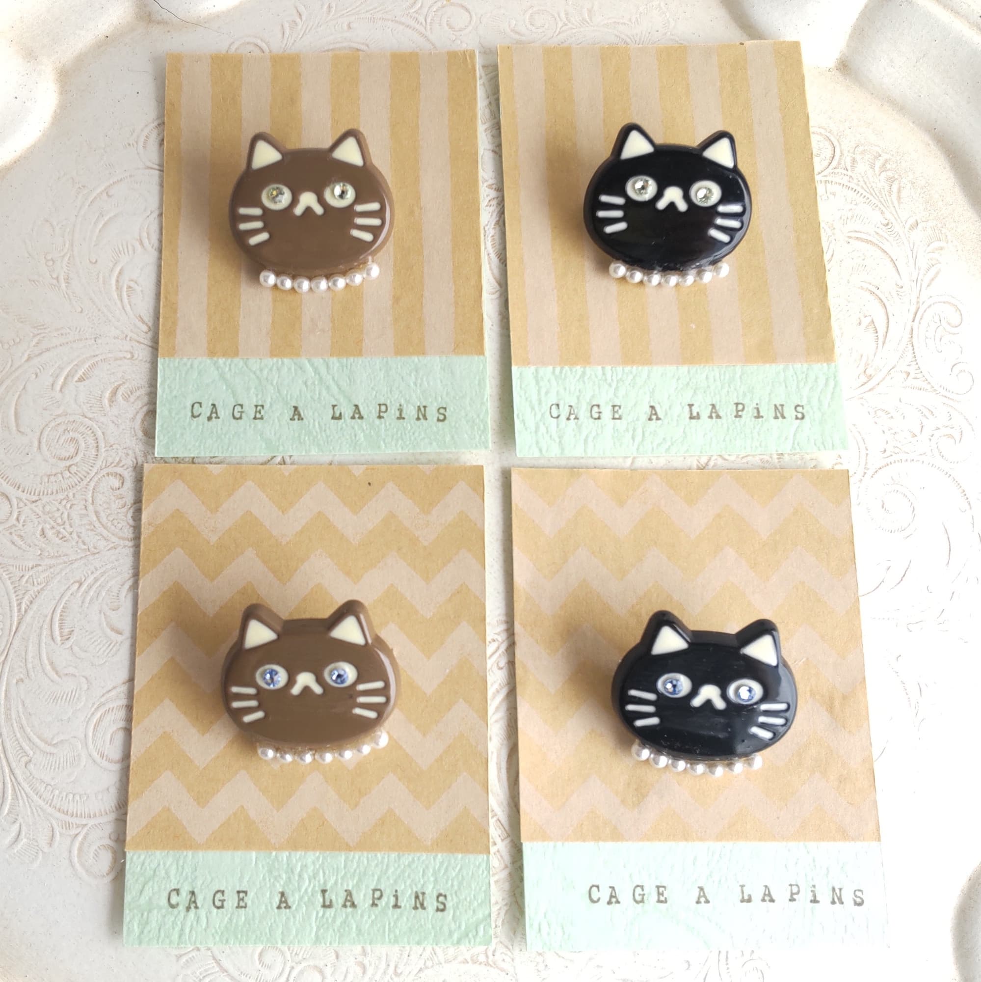 イヤリング、ブローチ、キーホルダーなど…お好みの形で、日々のお出かけに小さな猫を一緒に連れて行ってください。