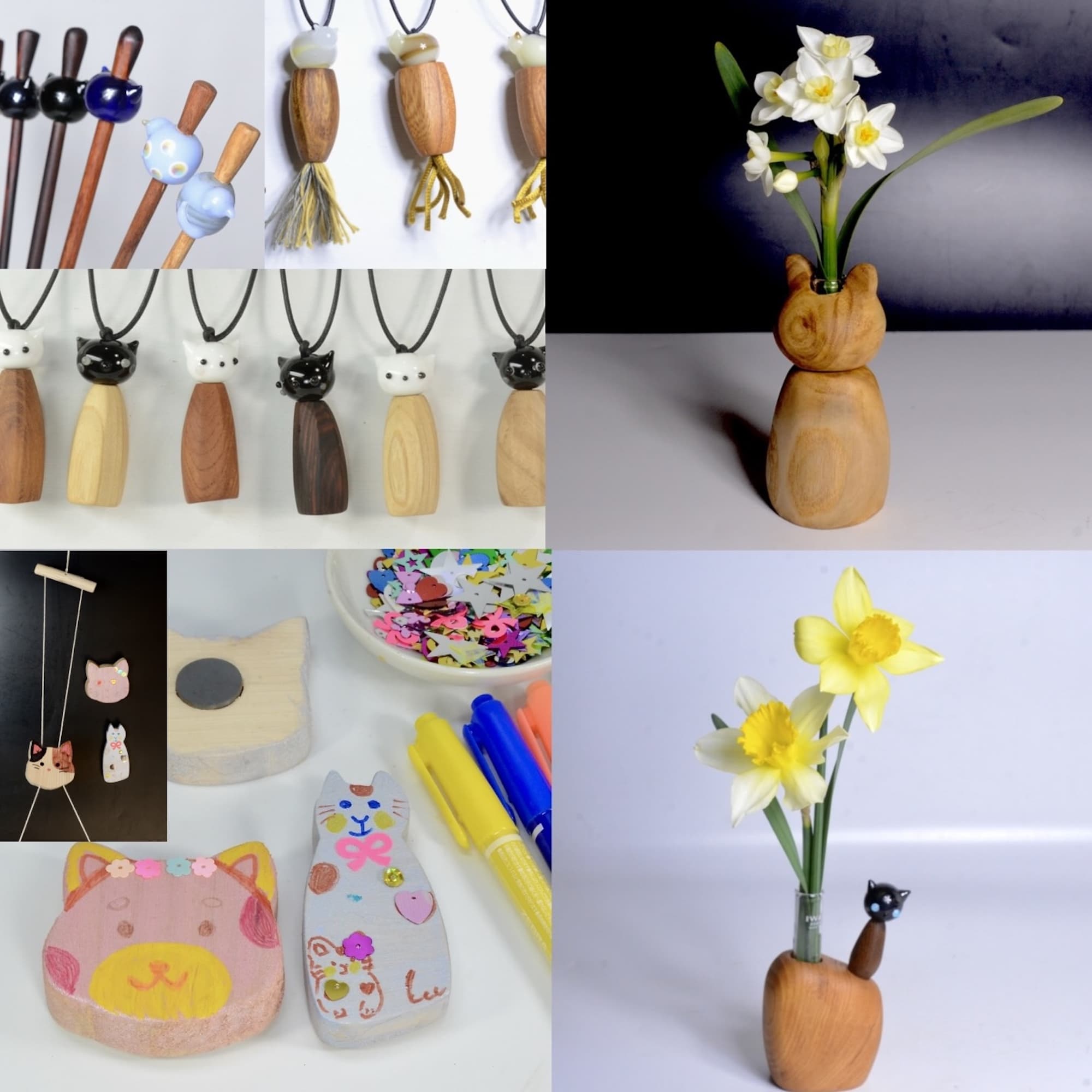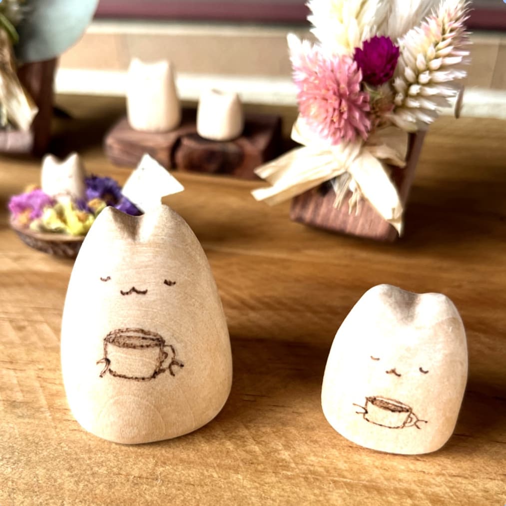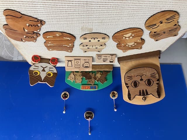 物販は、桧の猫プレート、コースター、キーホルダーを販売します