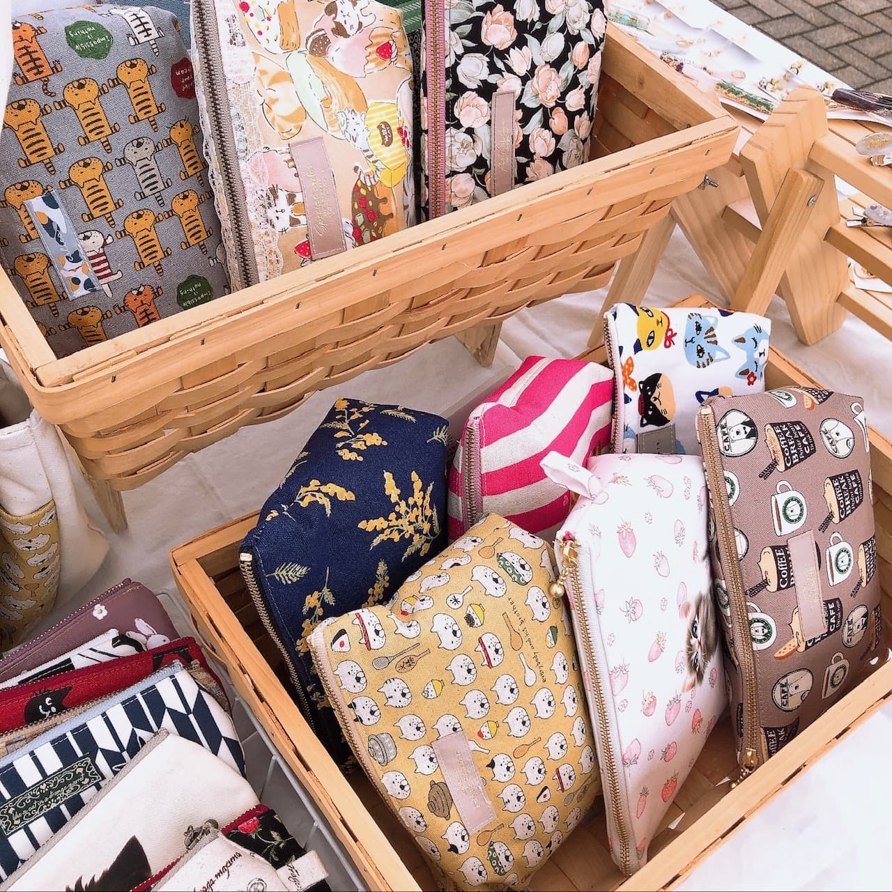 柄×色を楽しみながら、ポーチや巾着袋・各種ケース類など日常で使える布小物を作っております。