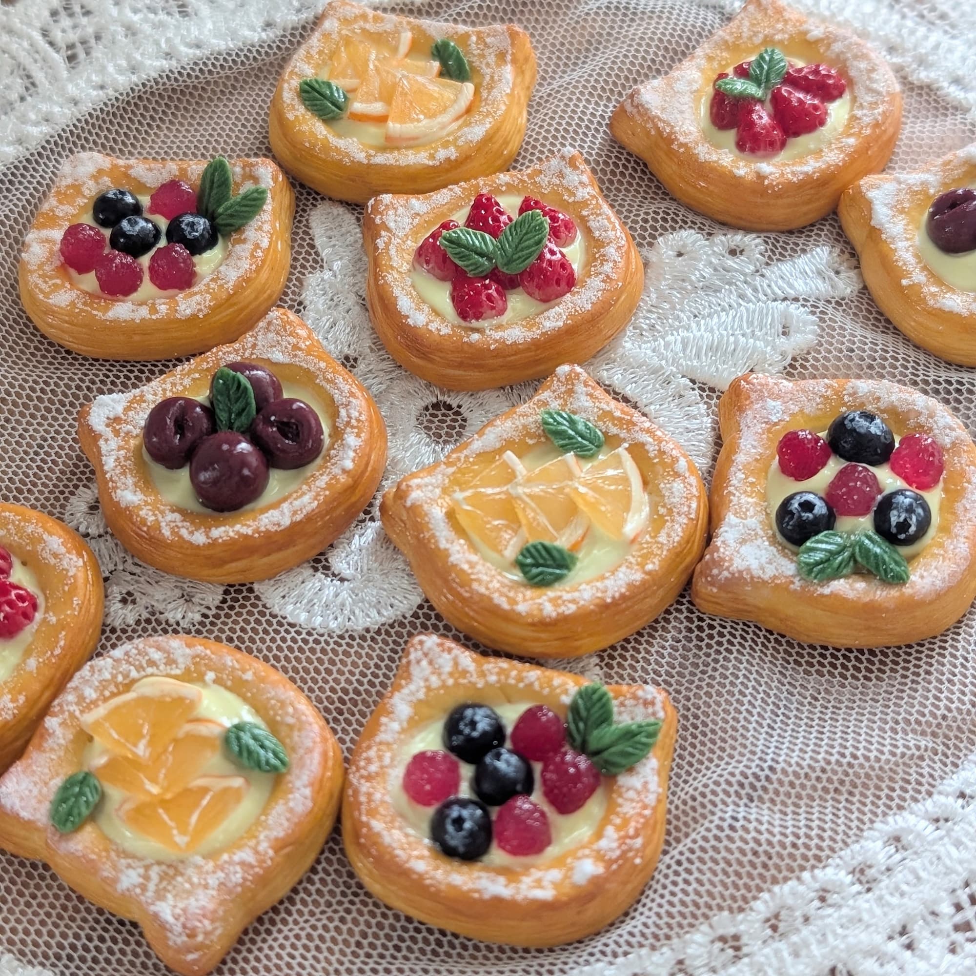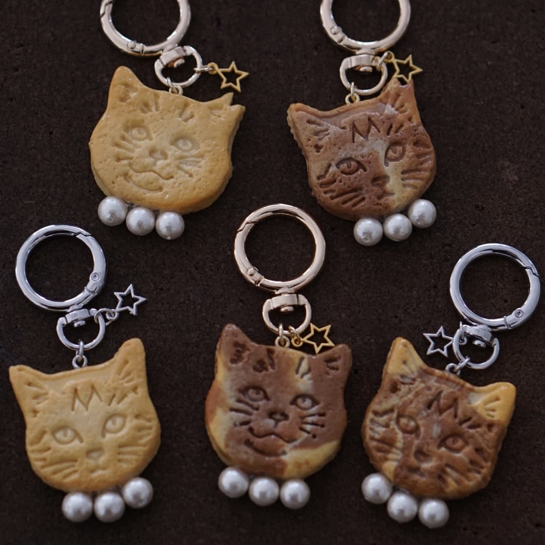 樹脂粘土やレジン等で作ったミニチュアフードやフェイクフードを、アクセサリーや雑貨に加工しています。猫パン・猫パンケーキ・猫クッキー等の猫モチーフで作ったアクセサリーは猫好きさんに人気です。