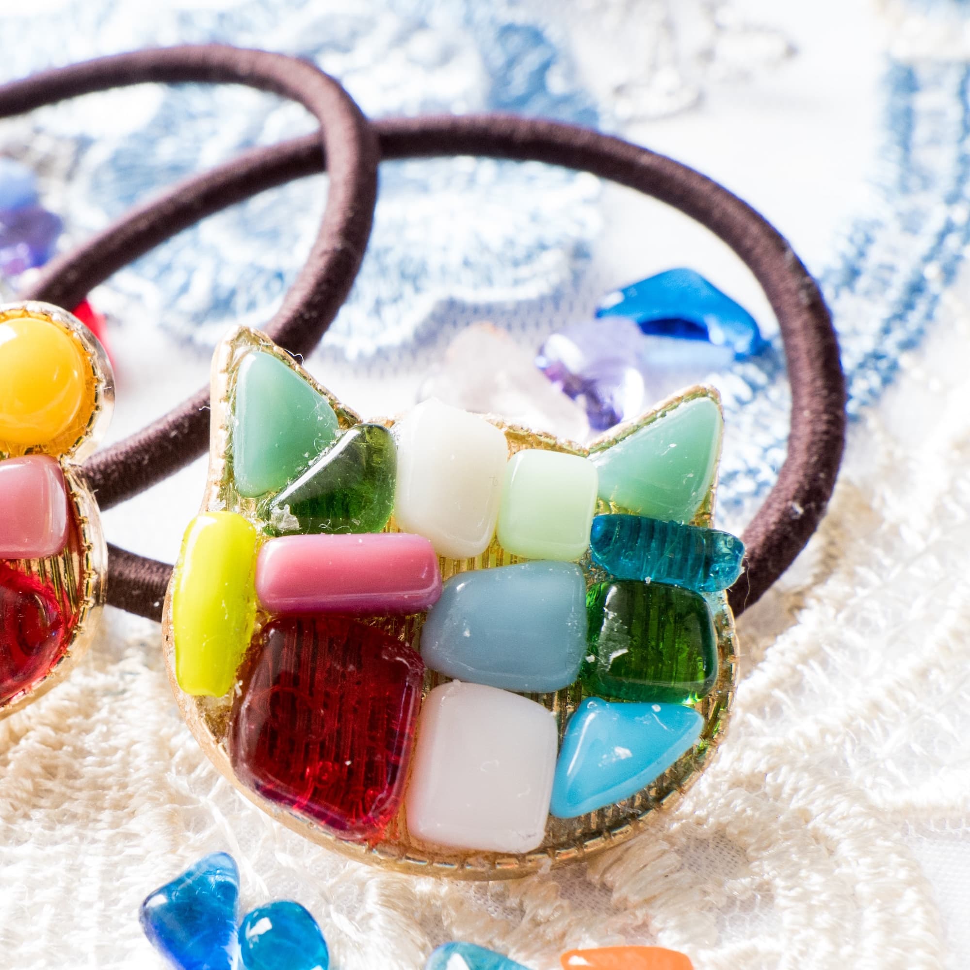 レトロなアンティークリボン、色彩豊かな美しいチェコビーズ、グラデーションに徹底的に拘ったレジン……