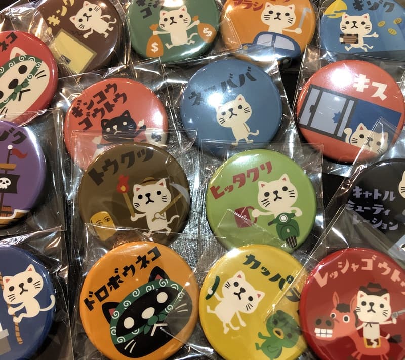 カワイイ顔で悪事をはたらく「ドロボウネコ」等キャラクターのイラストをメインにしたTシャツ、トートバッグ、缶バッジなどを販売します。