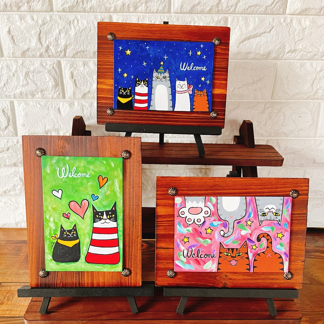 黒板アートライブペイント、猫雑貨
