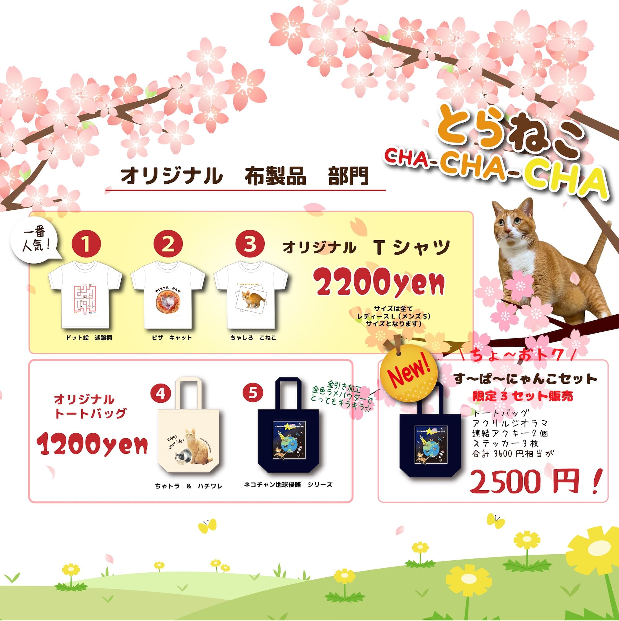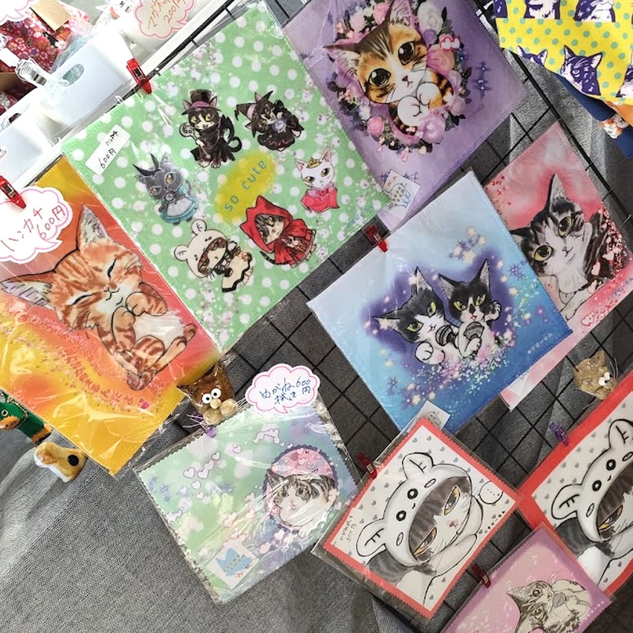 にゃんぱらではポストカードを中心にタオルハンカチ エコバッグアクセサリーなど猫雑貨販売します