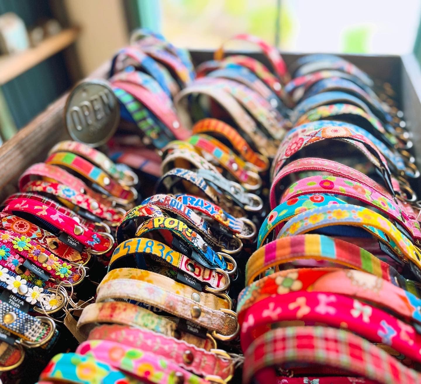 シュシュタイプの首輪、パラコード製のしっかりした首輪、革製の安定の首輪とマイバックなどにペットの名前入りのキーホールダーを販売いたします。その他にも、材料を残さず使うために色んな小物類を作成していますので、ぜひお立ち寄りください